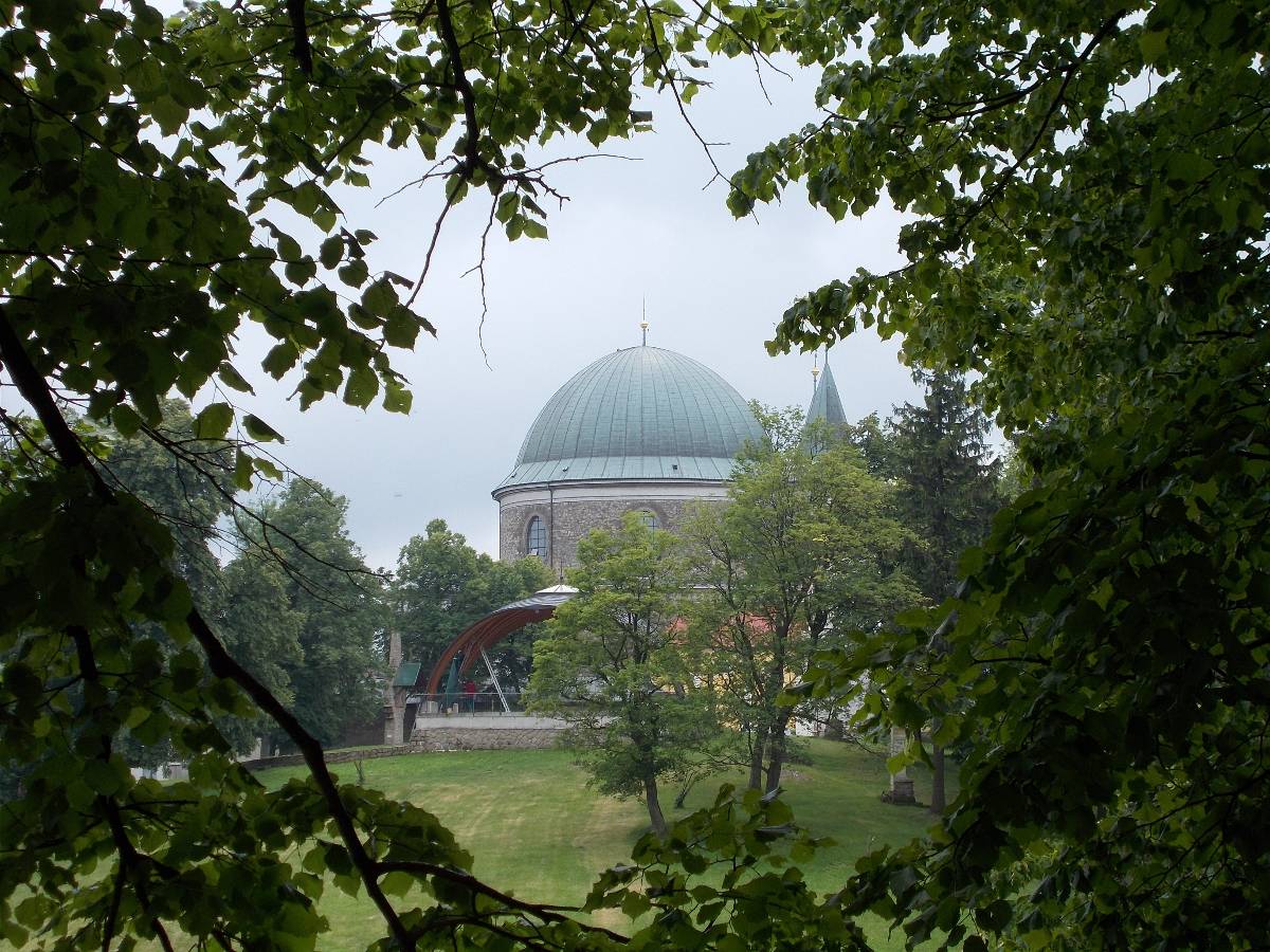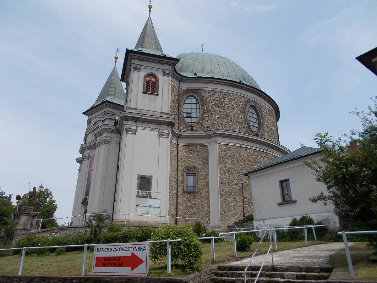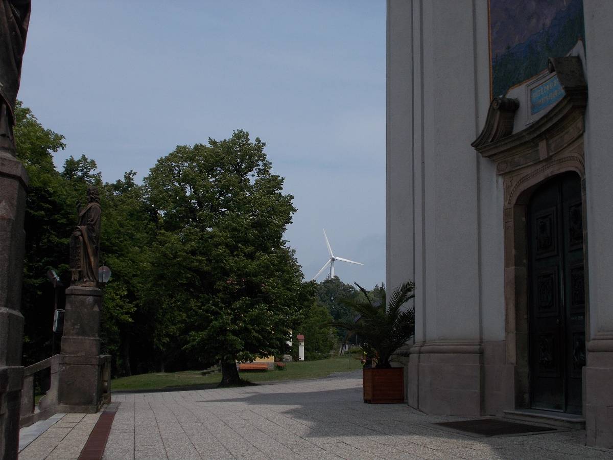 Stoupáme po úzké siničce až k parkovišti. Je pravé poledne. Už z dálky vidíme nádhernou kopuli chrámu. Pod chrámem v louce je mnoho poutních zastavení. Na obzoru se točí větrná elekrárna a u ní stojí rozhledna. Kam dřív? Ve věži chrámu začalo odbíjet poledne. Pomalým krokem se blížíme k nádhernému chrámu. Potkáváme řádové sestry, které vychází z řeholního domu. Smíšený pocit na tomto svatém místě mne neminul.