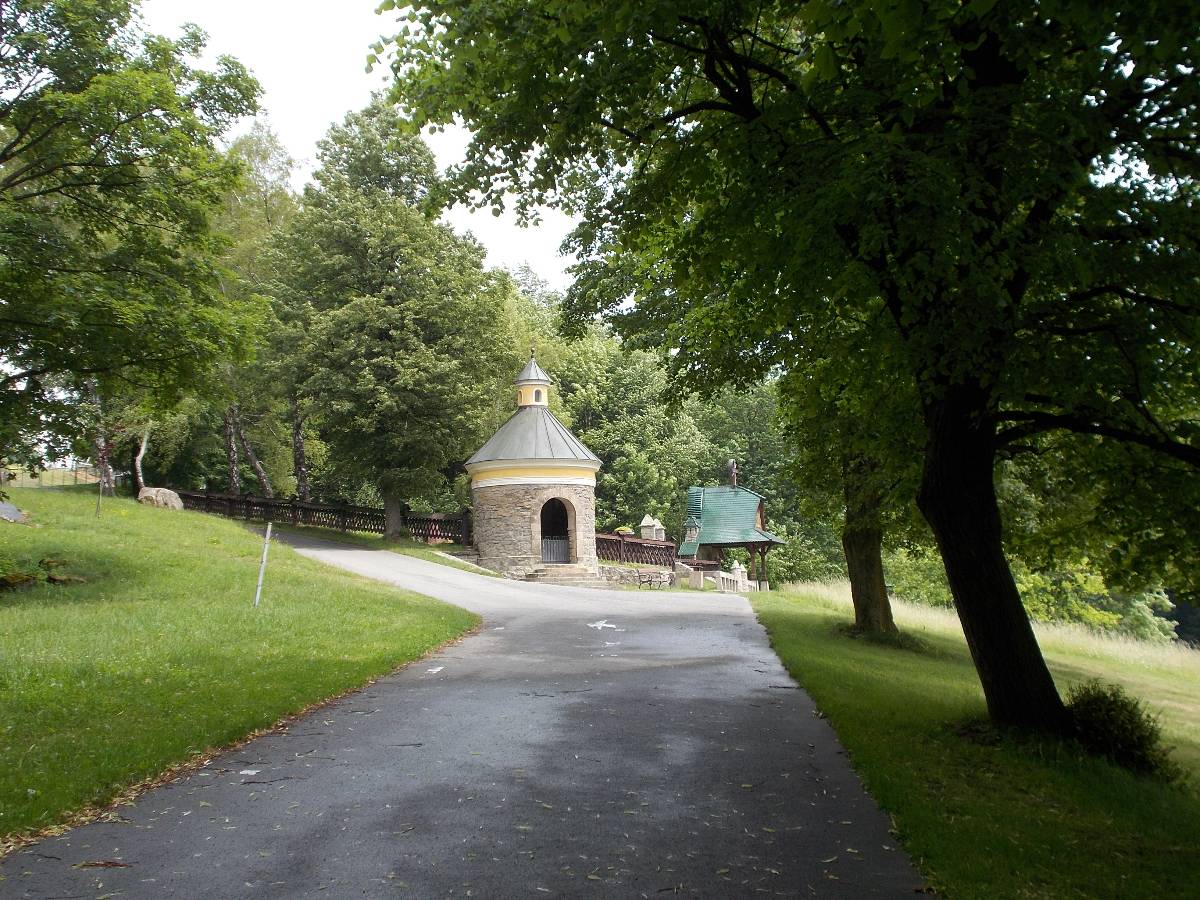 Poobědvali jsme ve zdejší hospůdce a ještě sešli k vodní kapli, u které je studánka se zázračnou vodou. Tolik krás najednou.