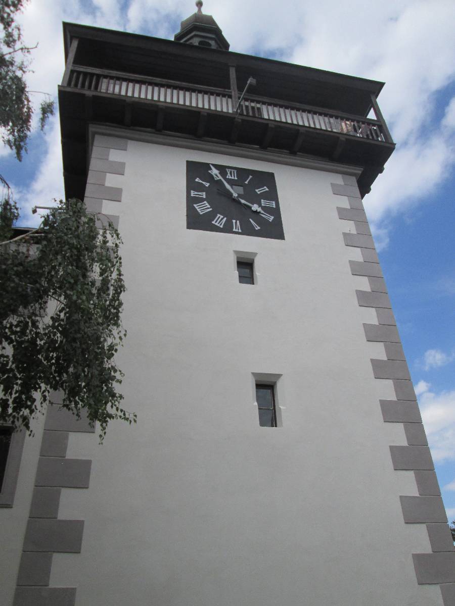 Vedle chuti si to tu užily i oči. Výhled z kamenné věže Hláska sahal až do těch kopců, kam jsme nedorazili. Udělalo se totiž vedro. A bazén v nedalekém venkovském koupališti za sobotního podvečera patřil jen nám.