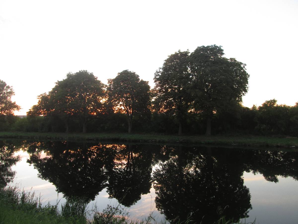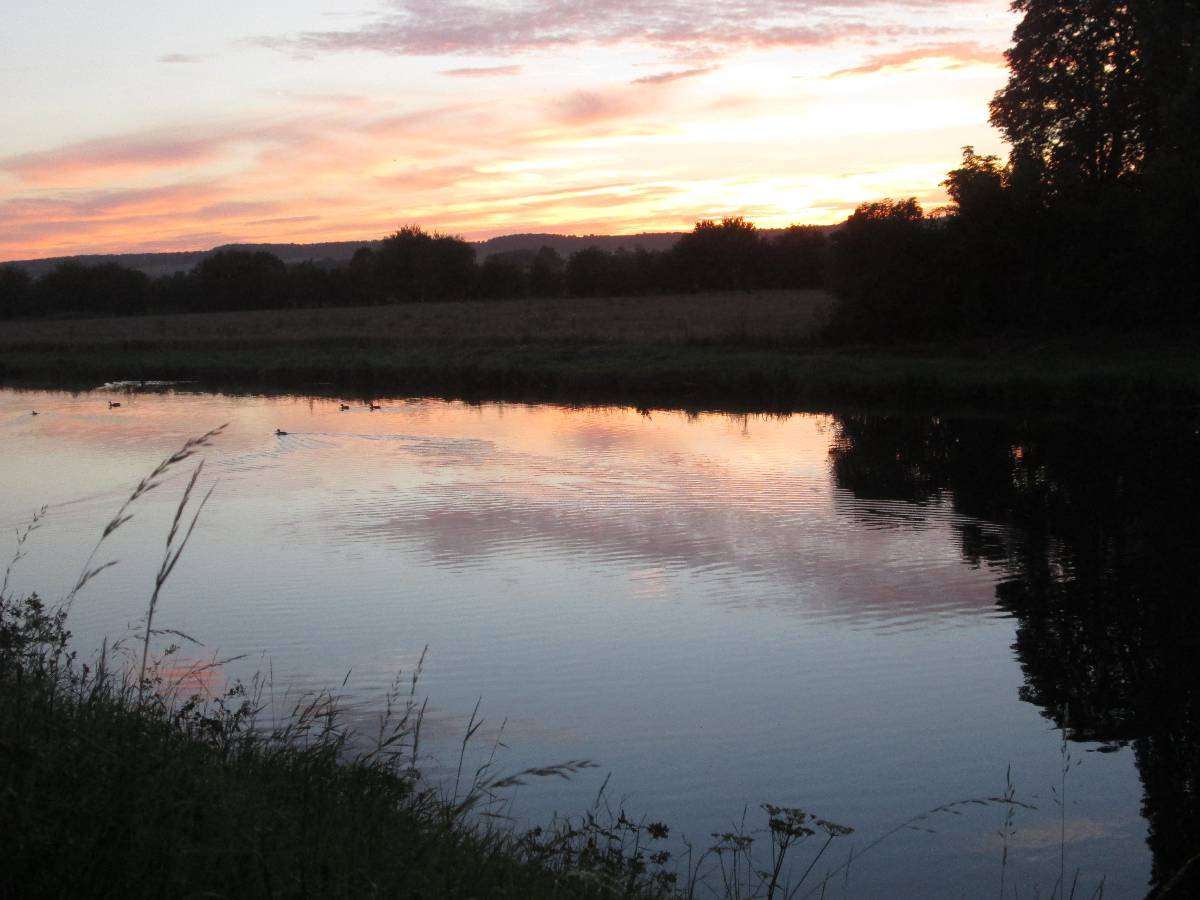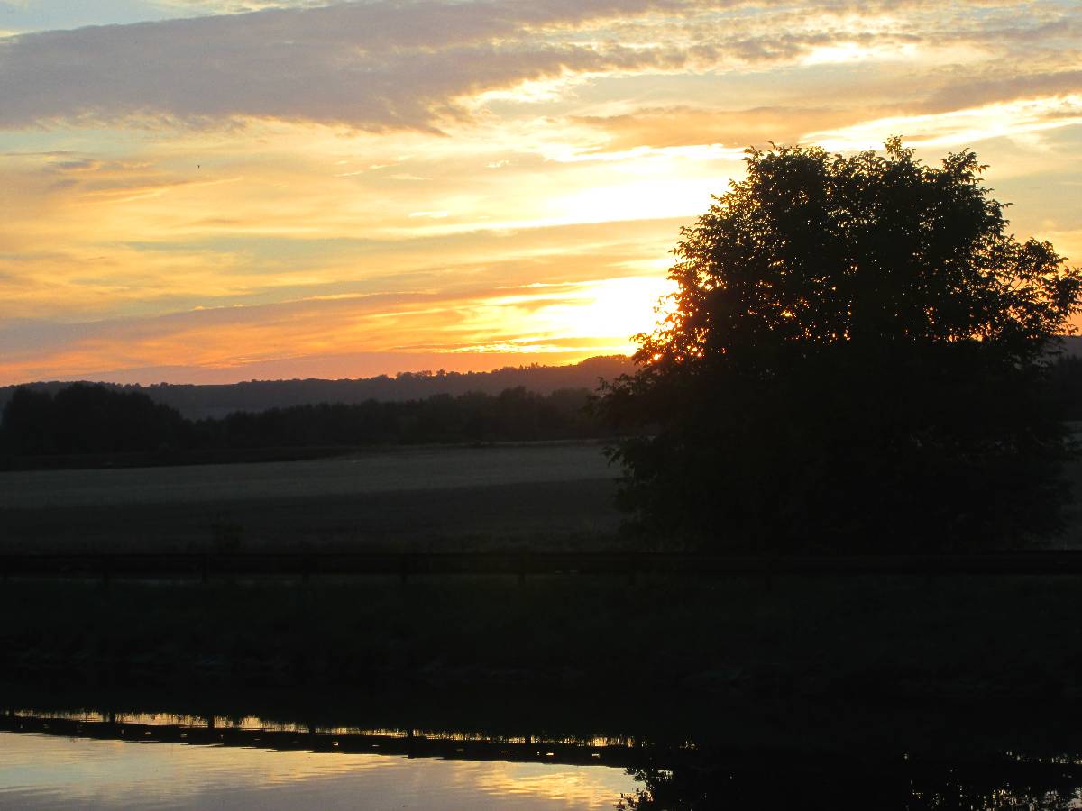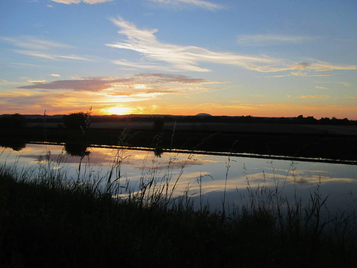 K tomu večerní procházka na hrázi podél plavebního kanálu se zapadajícím sluncem u Řípu.