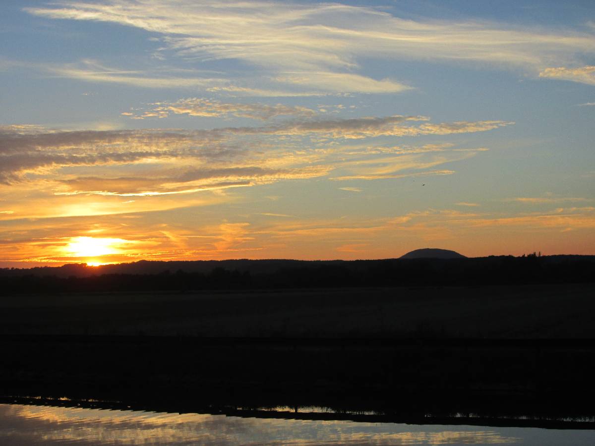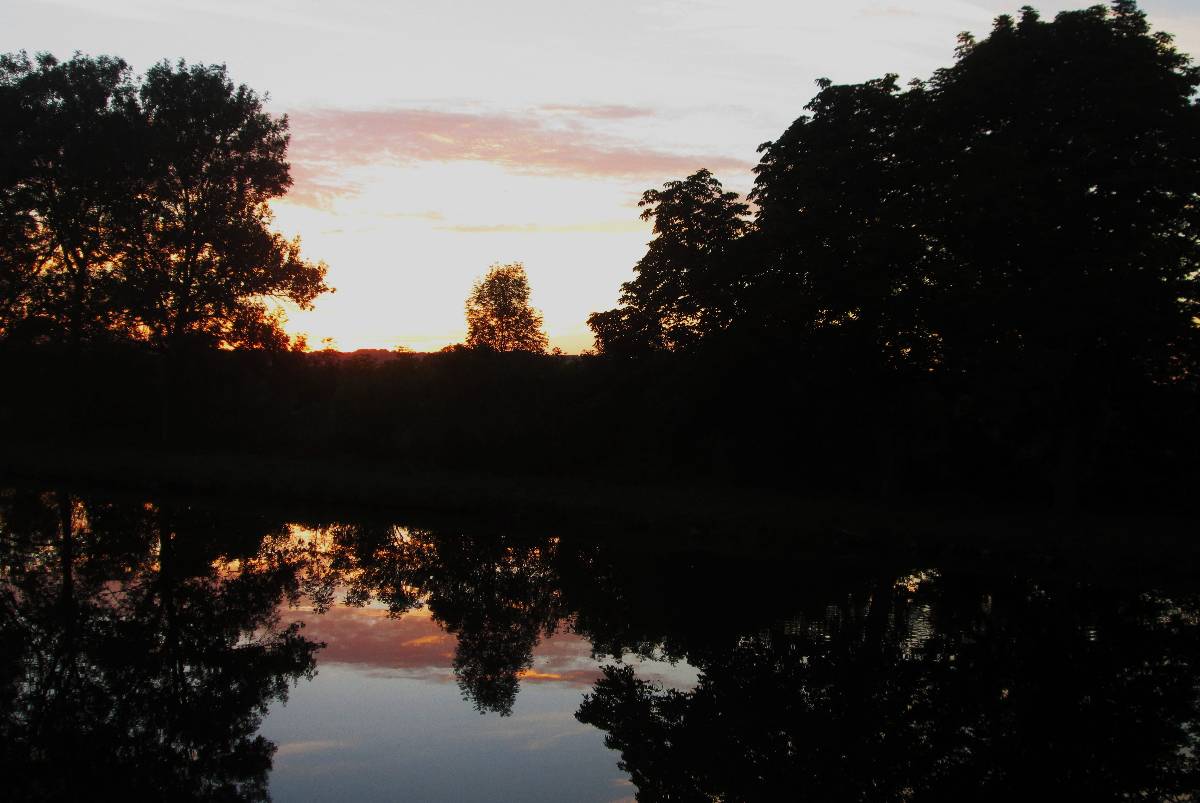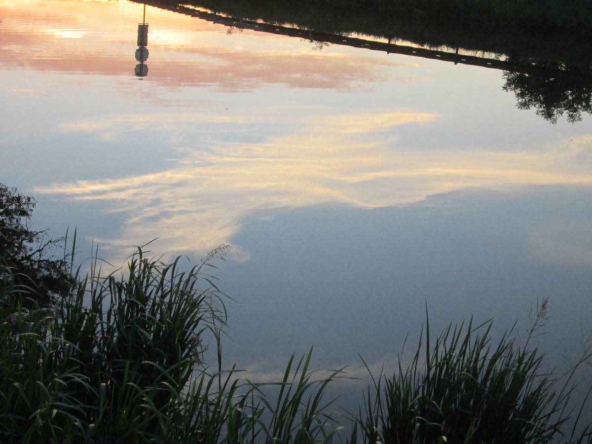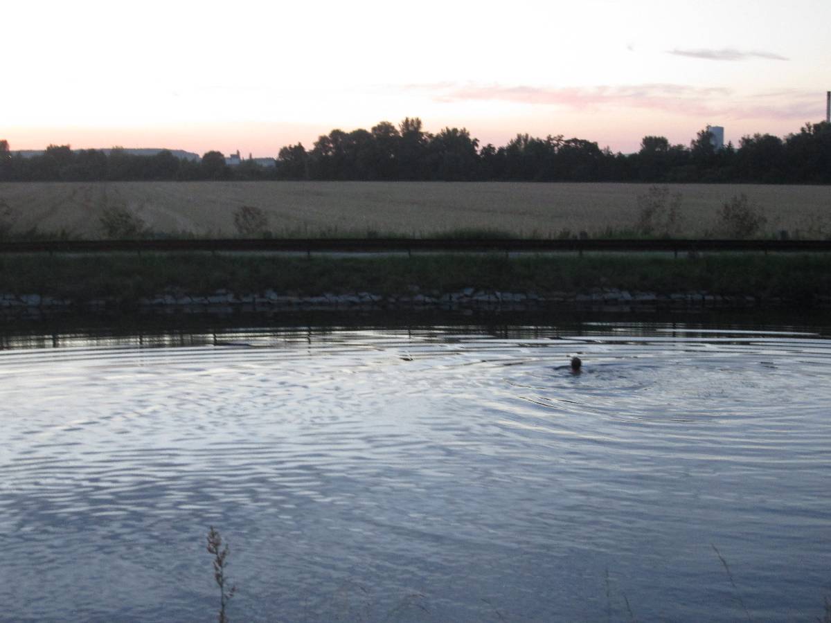 K tomu večerní procházka na hrázi podél plavebního kanálu se zapadajícím sluncem u Řípu.