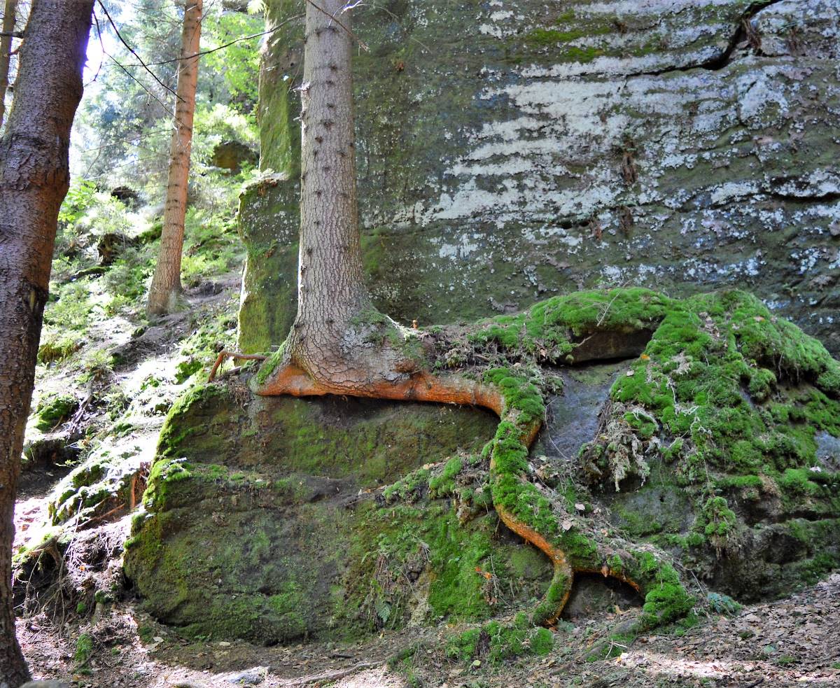 Ještě chvíli jsem rozebírala všechna fakta, proč do špendlíkem vytyčené oblasti zajet, proč nevyvádět krkolomné sportovní kousky a alespoň pro ten „dnešní den“ absolvovat lázeňskou terapii spočívající v plynulé chůzi mezi pískovcovými skalami. Nápomocna mi byla i Wikipedie, kde jsem dovyhledala ostatní statistické údaje, případně užitečné výletní informace. A protože „můj kamarád do deště“ nic nenamítal a s klidem moudrého krále doposlouchal de facto můj silně argumentační monolog, mohli jsme si se šaškovským trdlováním plácnout pravými dlaněmi, v lásce se obejmout a vyrazit na cestu.