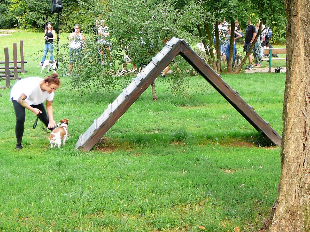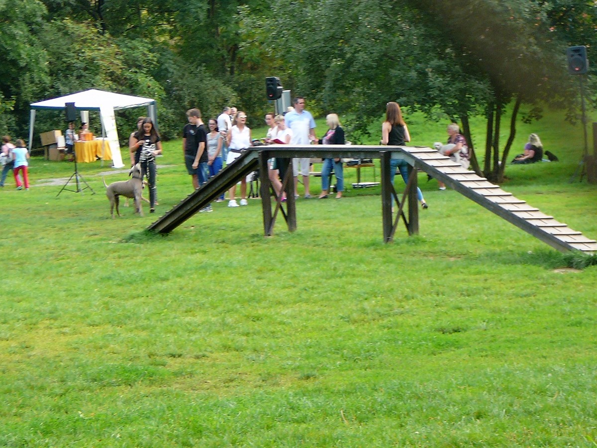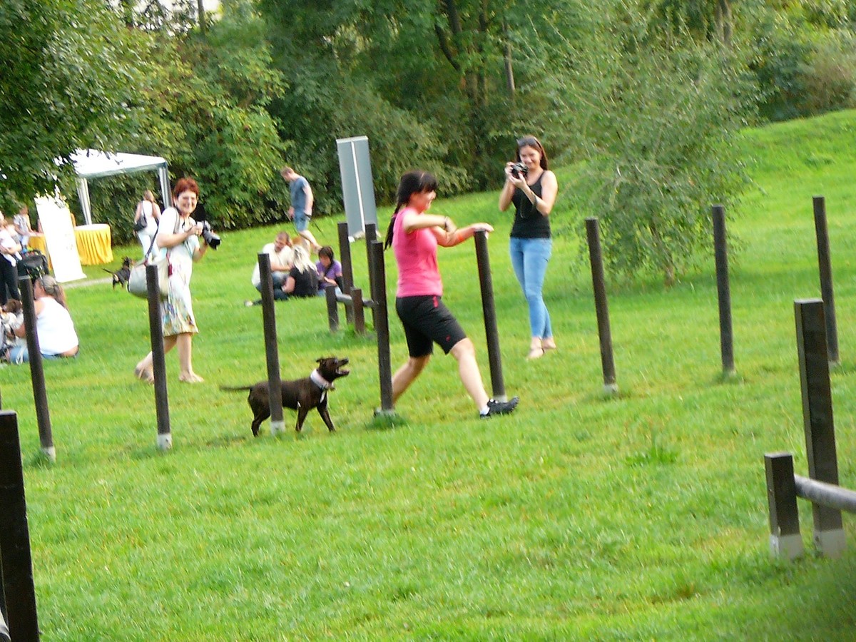 Ve čtvrtek 24. srpna uspořádala Praha 9 na psím hřišti v Podviní pro majitele pejsků a jejich miláčky zábavné psí odpoledne. Protože mám pejsky ráda, šla jsem se tam podívat. Musela jsem zůstat za drátěným plotem, neboť vstup byl povolen pouze registrovaným účastníkům. I tak jsem tam strávila příjemnou chvíli. Na hřišti se sešlo asi dvacet pejsků různých ras i neras se svými paničkami, páníčky a jejich dětmi. Na vyzvání pořadatelů absolvovali jeden po druhém běh po vyznačené trase s překážkami. Několikrát se stalo, že překážky zdolali páníčkové, nikoli pejsci. Nešlo o žádnou dramatickou soutěž, ale o zábavu. Atmosféra mezi účastníky byla pohodová, všichni se dobře bavili. K dobré náladě přispělo i hezké počasí a stánek s občerstvením. Líbí se mi, když se lidé dokáží při takových akcích sejít.