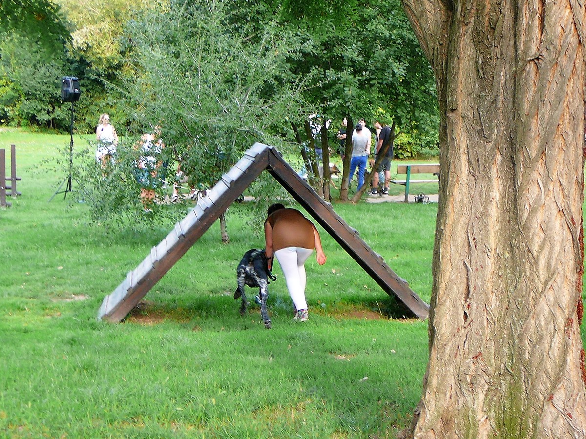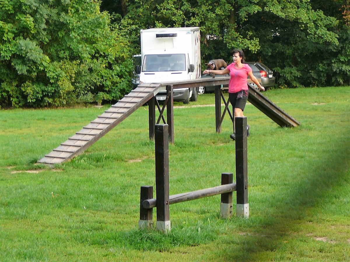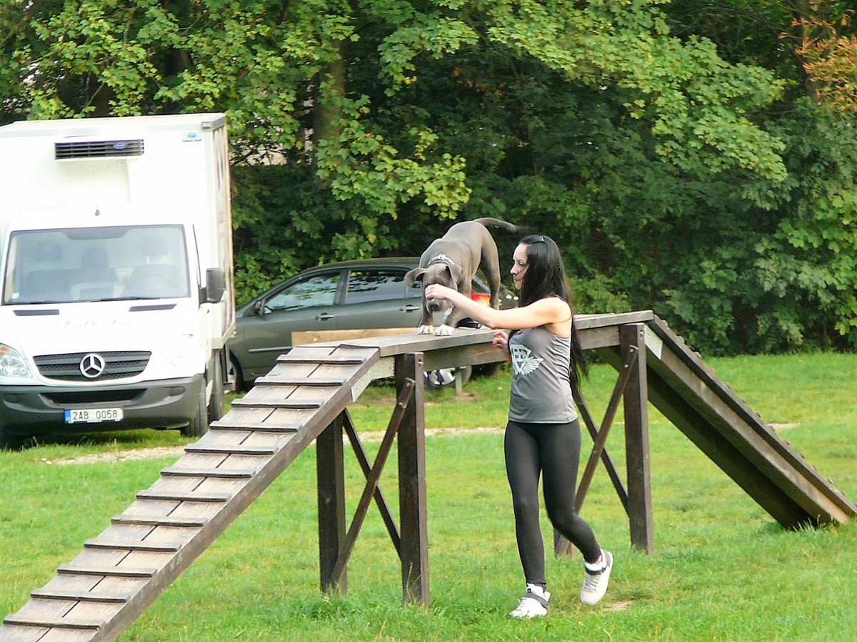 Ve čtvrtek 24. srpna uspořádala Praha 9 na psím hřišti v Podviní pro majitele pejsků a jejich miláčky zábavné psí odpoledne. Protože mám pejsky ráda, šla jsem se tam podívat. Musela jsem zůstat za drátěným plotem, neboť vstup byl povolen pouze registrovaným účastníkům. I tak jsem tam strávila příjemnou chvíli. Na hřišti se sešlo asi dvacet pejsků různých ras i neras se svými paničkami, páníčky a jejich dětmi. Na vyzvání pořadatelů absolvovali jeden po druhém běh po vyznačené trase s překážkami. Několikrát se stalo, že překážky zdolali páníčkové, nikoli pejsci. Nešlo o žádnou dramatickou soutěž, ale o zábavu. Atmosféra mezi účastníky byla pohodová, všichni se dobře bavili. K dobré náladě přispělo i hezké počasí a stánek s občerstvením. Líbí se mi, když se lidé dokáží při takových akcích sejít.
