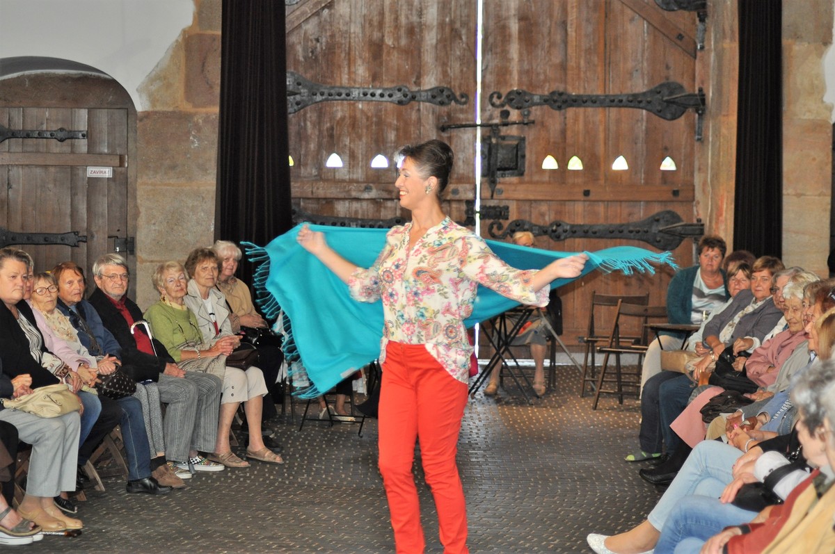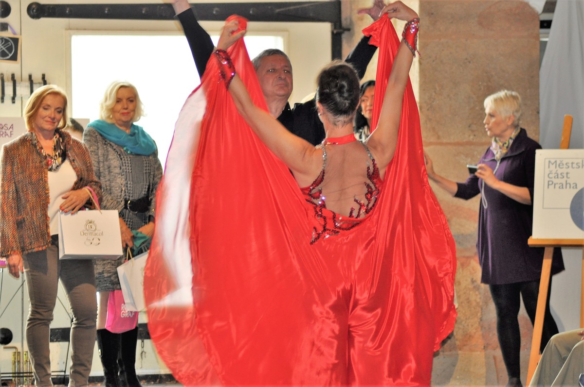 Módní přehlídku pak zpestřilo taneční vystoupení Máří Magdaleny Dufkové, finalistky evropských soutěží ve společenském tanci, kterou provedl pan Zdeněk Zuna. Všichni "účinkující" sklidili bouřlivý potlesk publika.