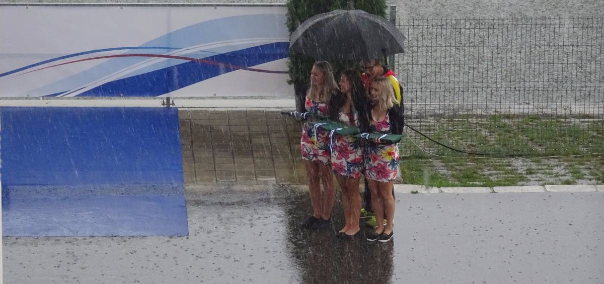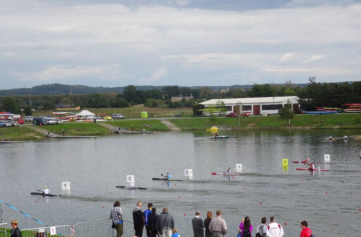 Strávila jsem v Labe aréně sobotní i nedělní odpoledne a měla jsem možnost nahlédnout i do věže, místa startu i depa. Moc se mi ten ruch na vodě i kolem ní líbil a děvčatům i klukům jsem fandila. Počasí jim bohužel nebylo příliš nakloněno a spustil se dokonce i liják. Diváci se bez ohledu na státní příslušnost v tu chvíli semkli v části tribuny kryté střechou, závodníkům však evidentně nevadil. Jen nad hosteskami, přinášejícími ke stupňům vítězů na polštářcích medaile, se vznášel deštník.