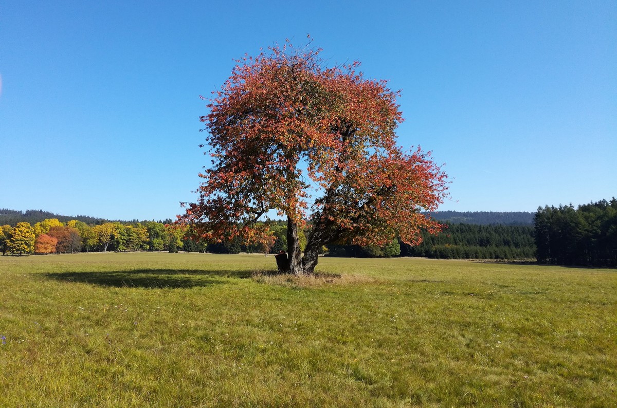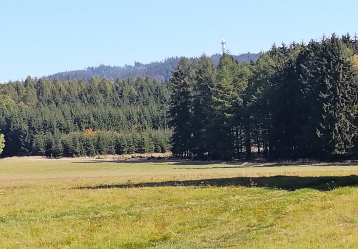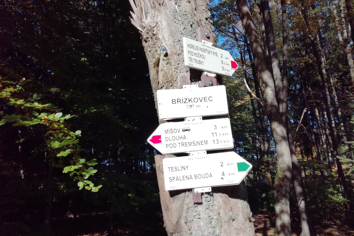 Parkujeme auto u rozcestníku v obci Teslíny a vycházíme po zelené. Tady jsme v nadmořské výšce 719 metrů a je to znát. Prahu jsme opouštěli v lehké mikině, zde vybalujeme bundy. Jdeme příjemnou lesní cestou, lemuje ji ostružiní a maliní, na kterých lze najít poslední pozdravy léta. Moc nechybělo a tahle trasa zůstala uzavřená. Jedná se totiž o místo, kde měl stát americký radar jako součást americké protiraketové základny v Evropě. Jednání české a americké vlády probíhala až do září 2009, kdy USA oznámily, že od svého záměru ustupují.