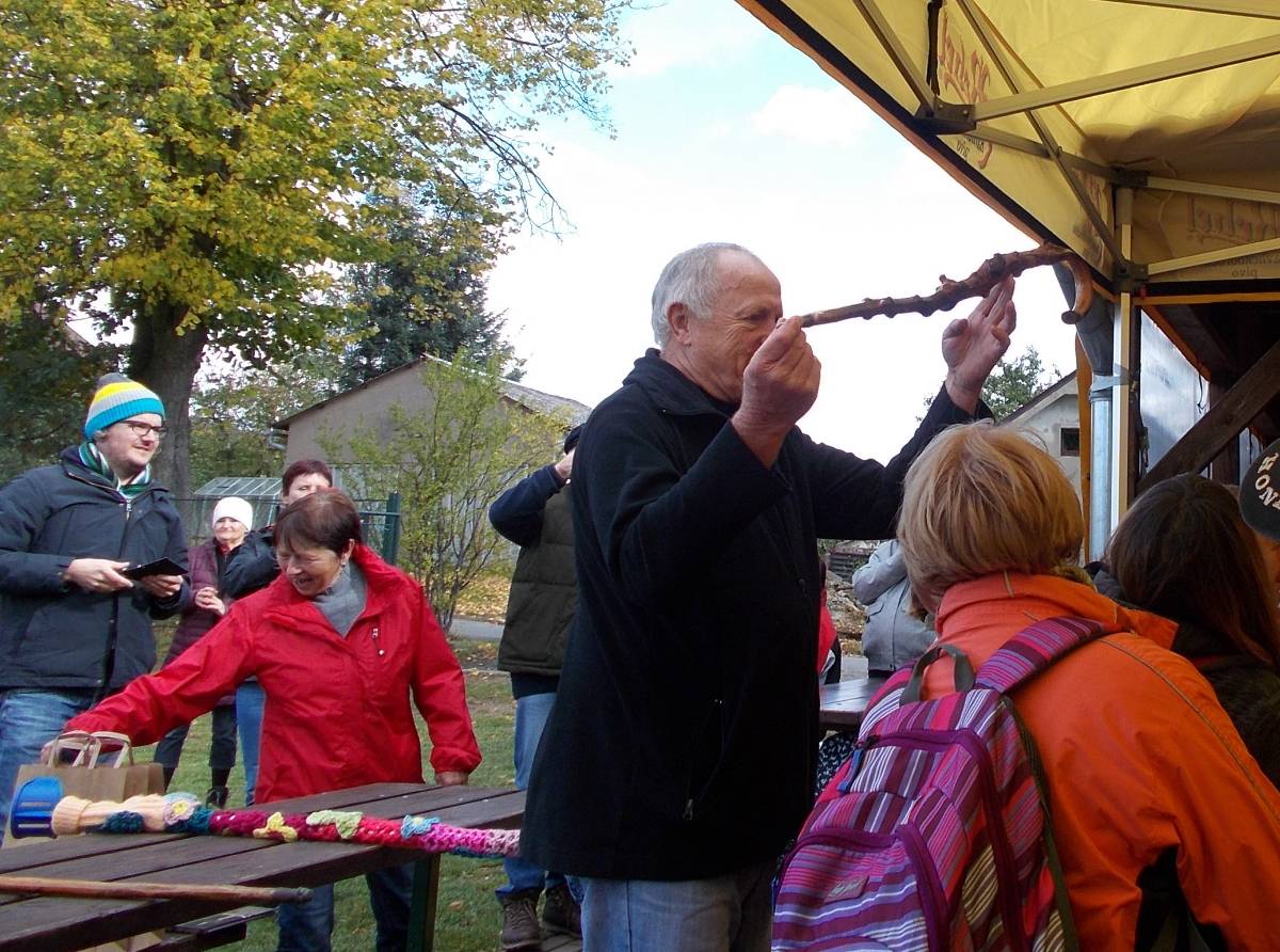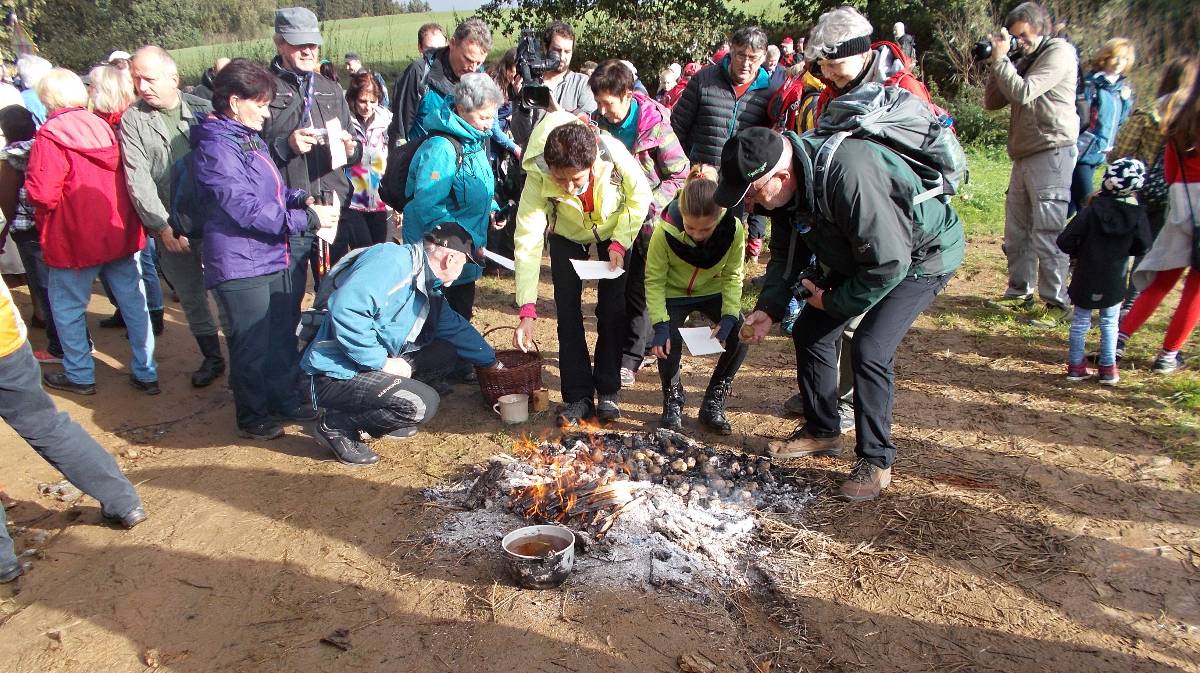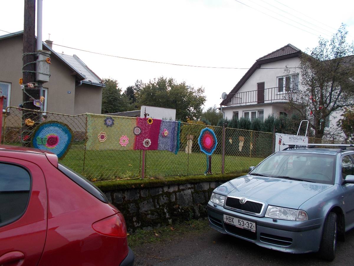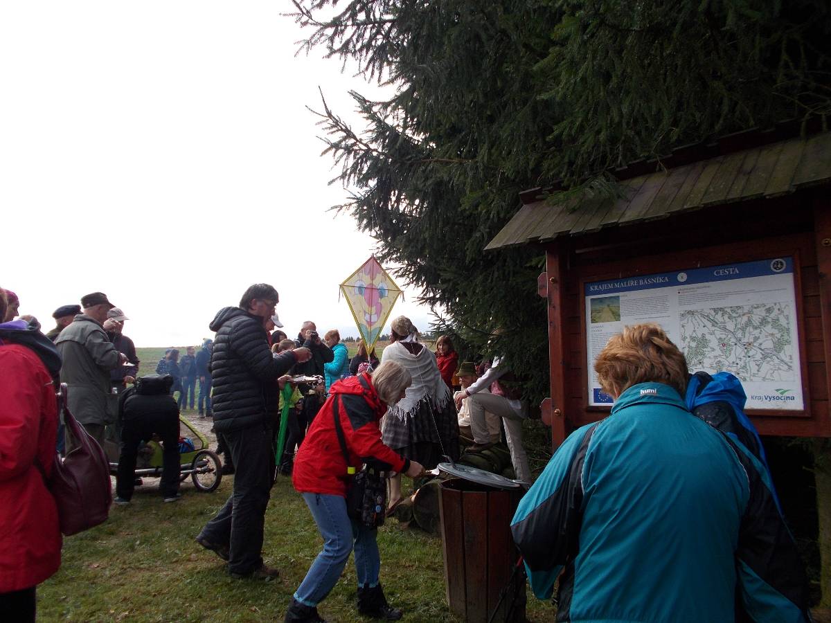 Letos jsou s námi i ženy ze skupiny "Motanice“. Ozdobily nám okolí školy svými výrobky .Ve městě Havlíčkově Brodě svými výrobky ozdobily cestu s názvem "Pletená stezka B. D. J.Reykových a Jana Zrzavého“. Chtějí tím připomenout tyto osobnosti. Asi v polovině špacíru na nás čekalo překvapení v podobě ohýnku s pečenými brambory - jako kdysi. Měli jsme štěstí, zrovna svítí slunko. Občerstvení v podobě pečených brambor a už putujeme dál, do vedlejší vesnice, kde na nás čekají pravé domácí bramboráčky a krátké počteníčko ze zápisků Jana Zrzavého v malé hospůdce. Počasí bylo jak načasované, právě prší, přímo leje. Schovat se a posvačit. Ano, tak to má být - přestává a my můžeme pokračovat na zpáteční cestu. Ještě přejdeme mostek přes Sázavu - právě tu, kde se každoročně pořádají "Neckyády“, a již nás vítá u sokolovny připravený stan s obědovým gulášem a pozdějí opečená kýta. K poslechu hrají Harmonikáři.