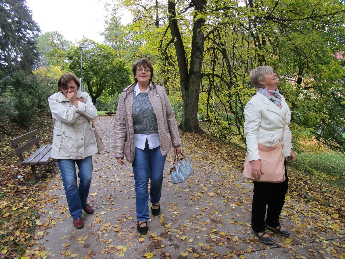 Nádherný říjnový den jsme si užily na kolonádě, v cukrárně i v lázeňském parku, kde jsme na každém kroku zakopávaly o nějaké houbičky. Evka nás pořád přemlouvala, že chce do Elektry na tanečky, ale vylezlo z ní, že by s bolavým kolenem jen seděla a koukala na nás, jak se protáčíme s lázeňskými šviháky. Tůdle, nůdle, rozhodla jsem, že jedeme k Libušce. Dobře jsem udělala, u Liby bylo útulno, příjemno a všechny čtyři jsme si pěkně popovídaly. Slabší nátury začaly odpadat a já s Libou jsme pomlouvaly všechny íčkaře až do jedné hodiny.