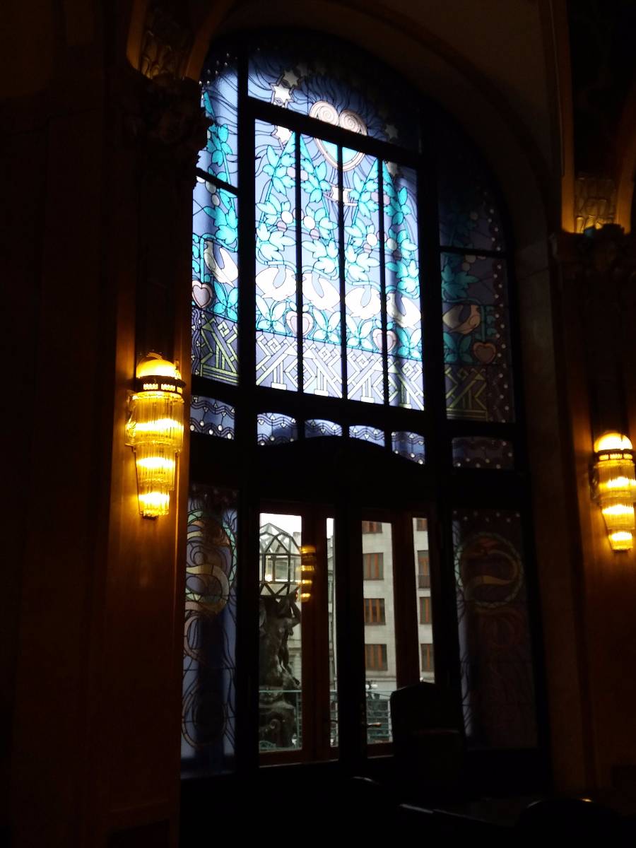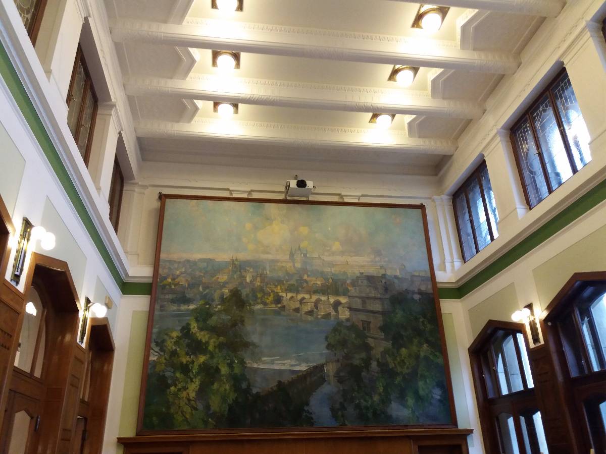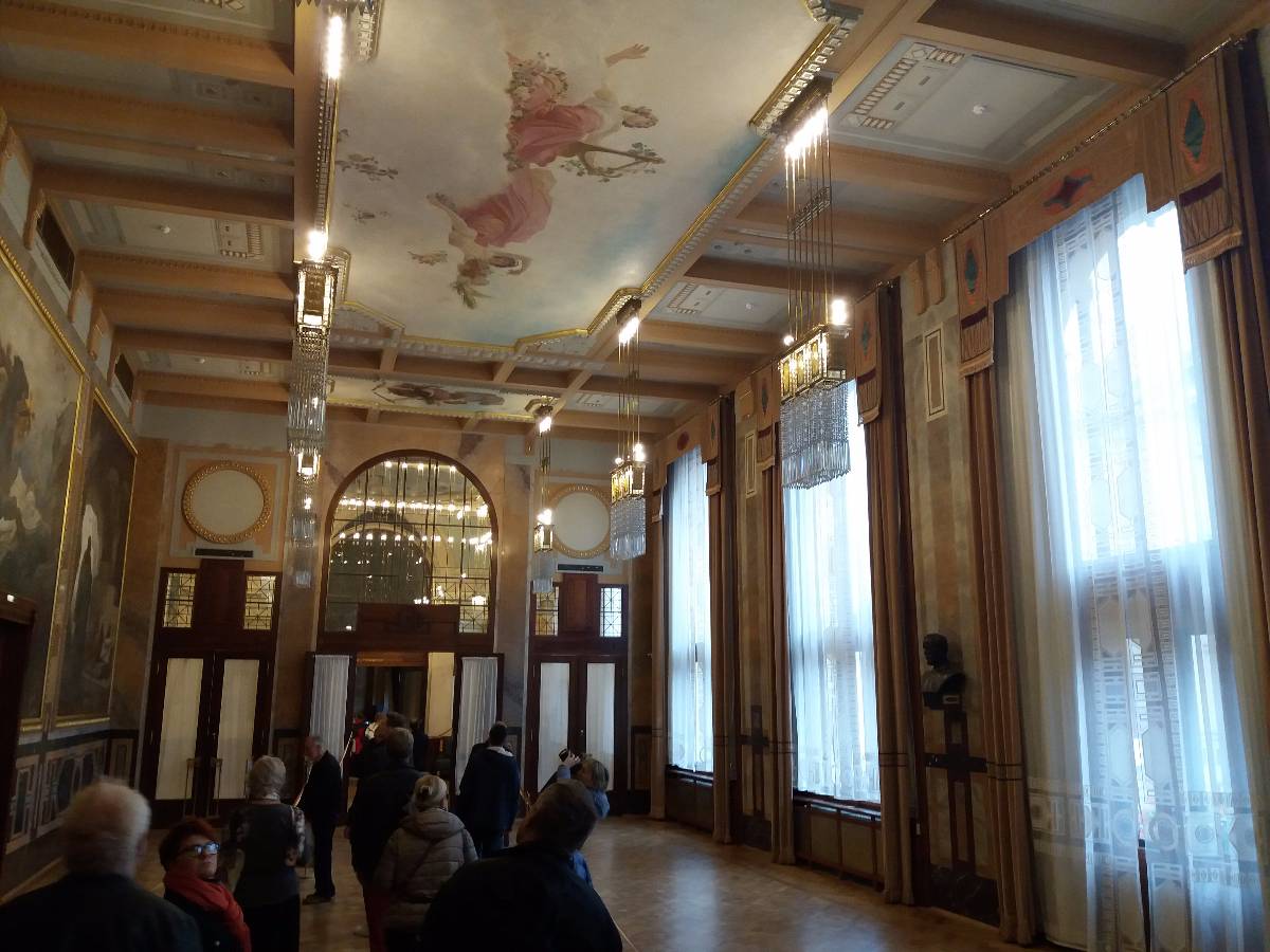 Naše prohlídka začala ve Smetanově síni, kterou má většina Pražáků spojenou s výchovnými koncerty během školních let. I my jsme mohli posedět a vyslechnout si varhanní koncert žáků AMU. Po tomto kulturním prožitku naše cesta dále pokračovala přes Cukrárnu, Slovácký salonek, Salonek Boženy Němcové, Orientální salonek, Grégrův sál, Palackého sál do Primátorského sálu, který je situován nad hlavním vchodem do Obecního domu a o výzdobu se postaral Alfons Mucha. Dále jsme prošli Riegrův sál a nejméně zdobený Sladkovského sál. Čím méně dekorace, tím více vyniknou nádherné lustry. Mramorové schodiště, výtah a nakonec i ona místnůstka, to vše stojí za povšimnutí.