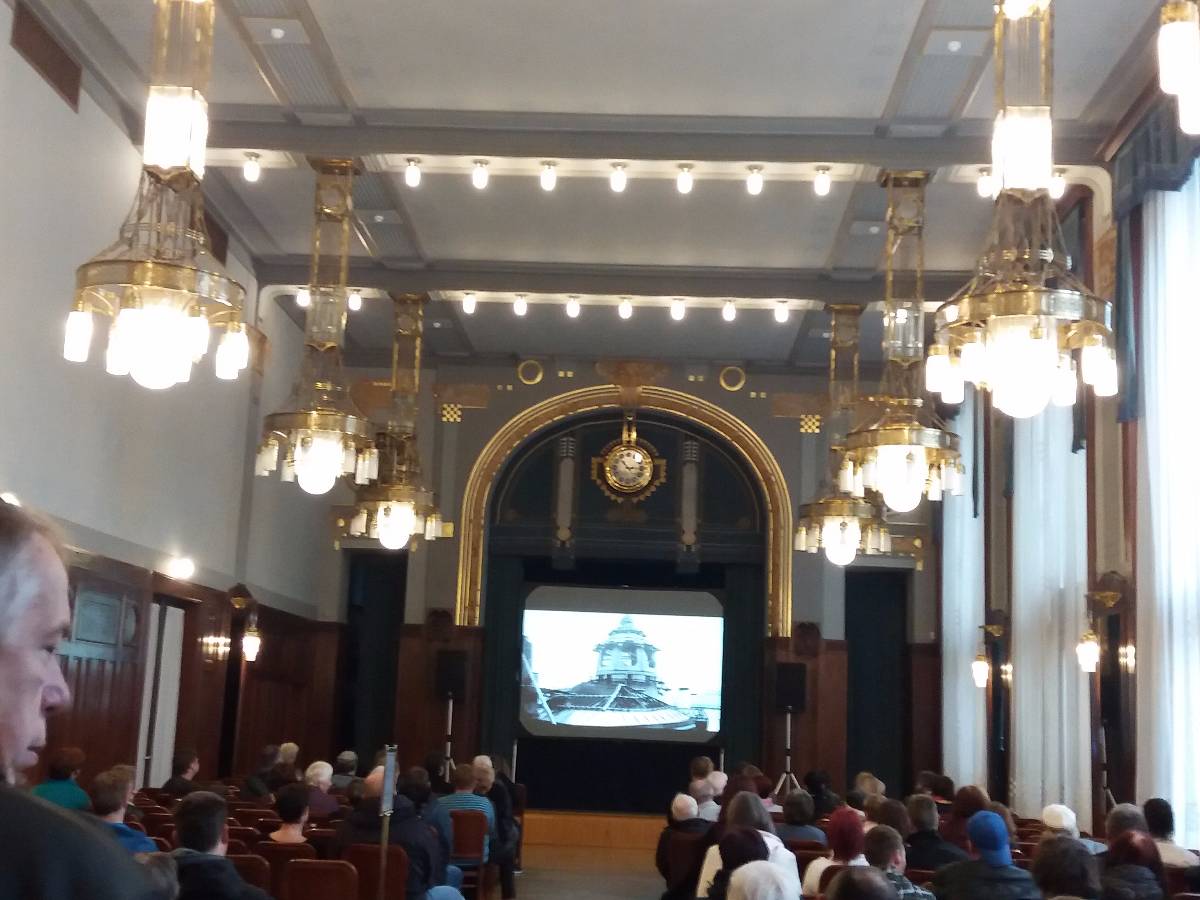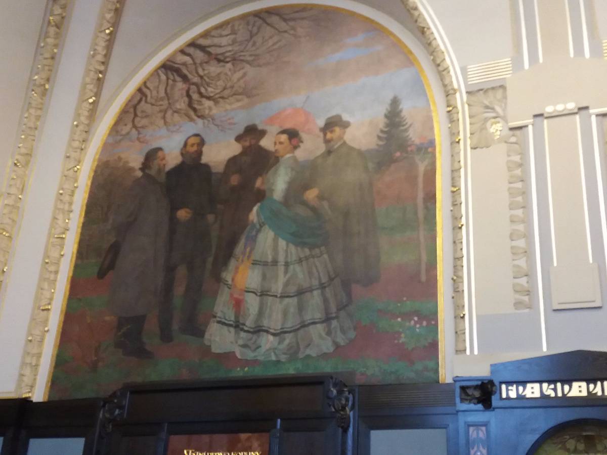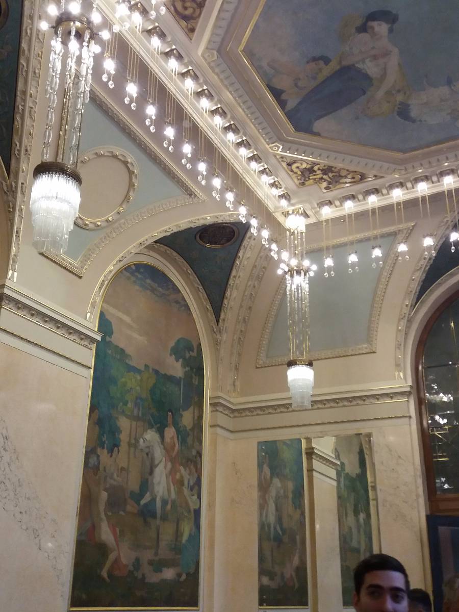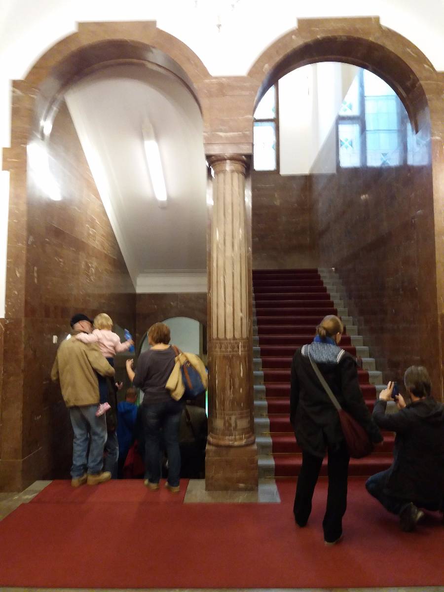Naše prohlídka začala ve Smetanově síni, kterou má většina Pražáků spojenou s výchovnými koncerty během školních let. I my jsme mohli posedět a vyslechnout si varhanní koncert žáků AMU. Po tomto kulturním prožitku naše cesta dále pokračovala přes Cukrárnu, Slovácký salonek, Salonek Boženy Němcové, Orientální salonek, Grégrův sál, Palackého sál do Primátorského sálu, který je situován nad hlavním vchodem do Obecního domu a o výzdobu se postaral Alfons Mucha. Dále jsme prošli Riegrův sál a nejméně zdobený Sladkovského sál. Čím méně dekorace, tím více vyniknou nádherné lustry. Mramorové schodiště, výtah a nakonec i ona místnůstka, to vše stojí za povšimnutí.
