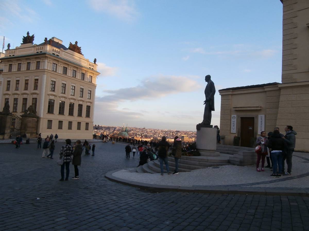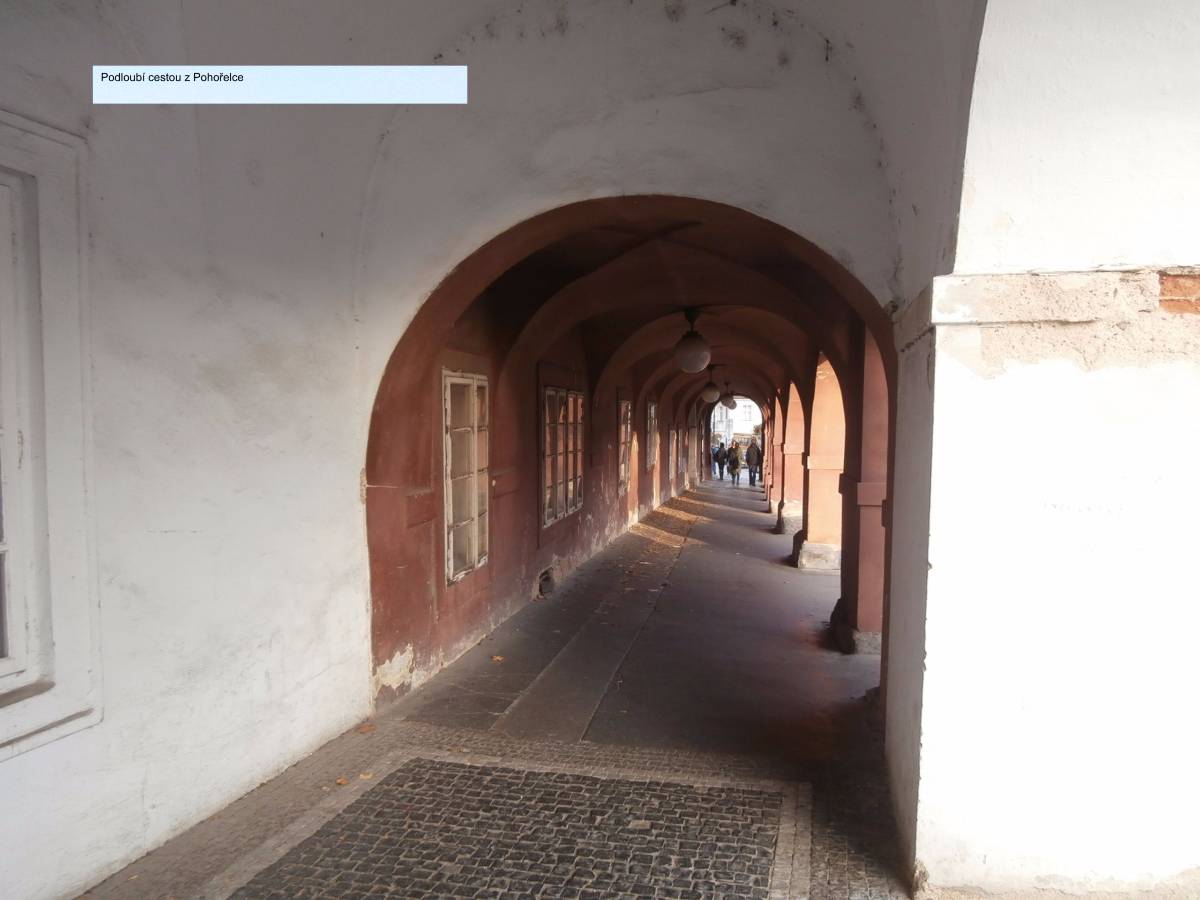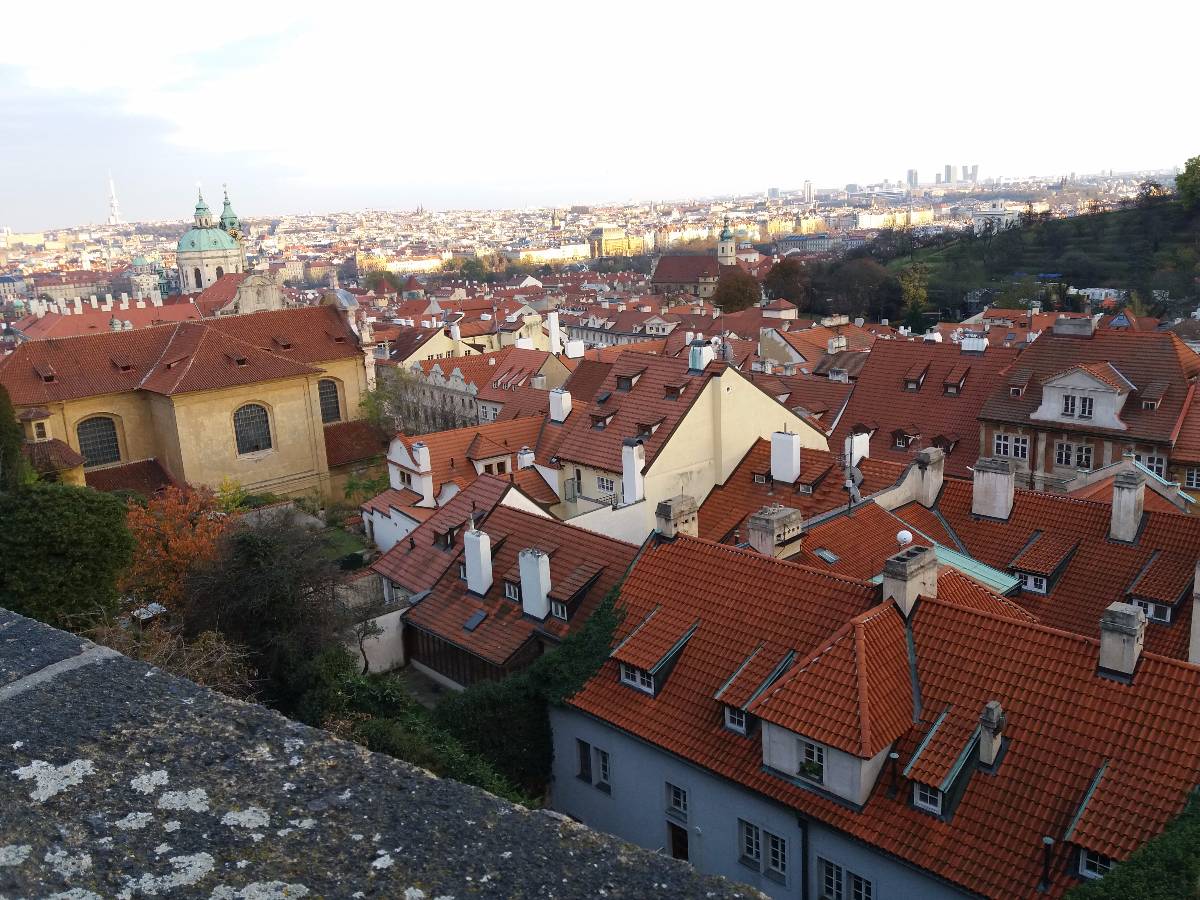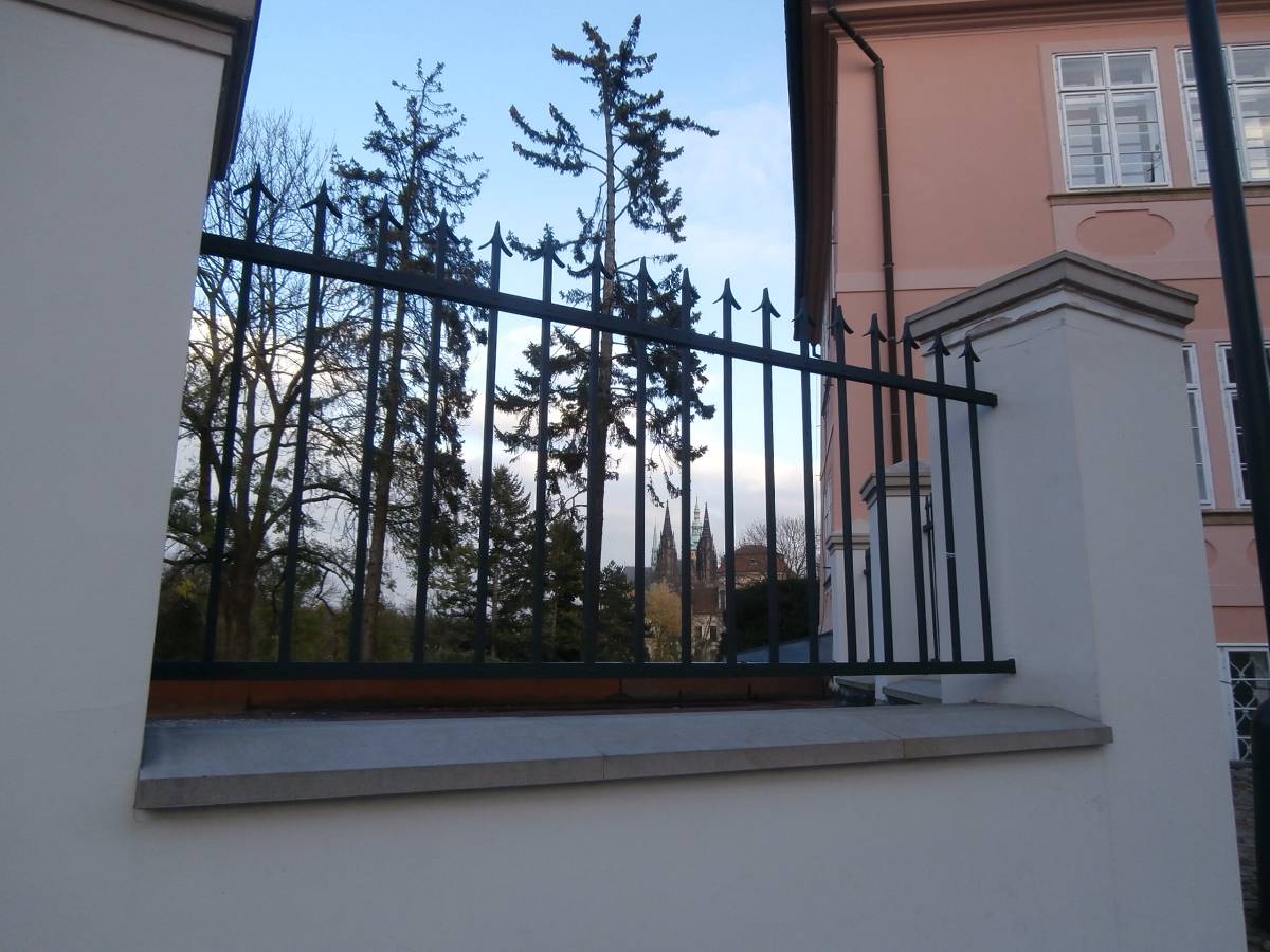 Nechám se tramvají vyvést na Pohořelec a jdu směrem k Pražskému hradu. Ne přímo. Na Loretánském náměstí projdu kolem Černínského paláce a Lorety, doslova se vnořím do Kapucínské ulice a začínám vychutnávat malebnost uliček, střech a komínů. Kapucínskou ulicí dojdu na Nový svět, kolem letní scény divadla Ungelt a restaurace U zlaté hrušky do Kanovnické ulice. Přes plot mrknu na Chrám sv. Víta, a na křižovatce ulic Kanovnické a U kasáren se zastavím u kostela sv. Jana Nepomuckého. Těžké dveře jsou zavřené. Otvírají se málokdy. Kostel byl součástí kláštera voršilek a je první sakrální stavbou Kiliána Ignáce Dientzenhofera. Po zrušení kláštera (1784 – Josef II.) sloužil jako vojenský sklad soli a po sto letech se z něj stává vojenský kostel. V současné době je využíván pro vojenské svatby, křty, pohřby, oslavné akce typu Den veteránů a i pro koncerty – nejbližší bude 15. listopadu, a to violoncellový koncert Dua Brikcius. Civilní veřejnost má možnost nahlédnout do interiéru při pravidelných čtvrtečních bohoslužbách. Po tomto krátkém zastavení minu vyznání lásky na oprýskané zdi a už se přede mnou otevírá Hradčanské náměstí. Pohledem vpravo zkontroluji Petřínskou rozhlednu, projdu kolem staronových autíček pro turisty a už se těším na výhled, který snad nikdy neomrzí. Koukám přes střechy, komíny, okna a okýnka Malé Strany na Nové Město. Když se dost vynadívám, pomalu sestupuji ulicí Ke Hradu, juknu na Radnické schody, otočím se na sluneční hodiny – jedny z nejstarších v Praze (1567), jsou na jižní straně komína Schwarzenberského paláce. Jánským vrškem, kolem muzea alchymie, kde snad prováděl pokusy i magistr Kelly, a úzké Břetislavovy uličky seběhnu do ulice Vlašské. Ta mě zavede na Tržiště, kam už doléhá hluk tramvají a aut z Karmelitské ulice. Pokud bych ji přešla, mohla bych se zatoulat dál přes Velkopřevorské náměstí až na Kampu. Dnes ale už ne. Pomalu se stmívá, a tak se nechám odvézt do centra velkoměsta……