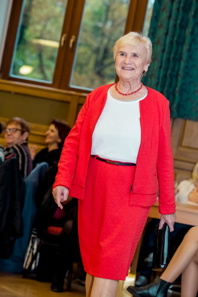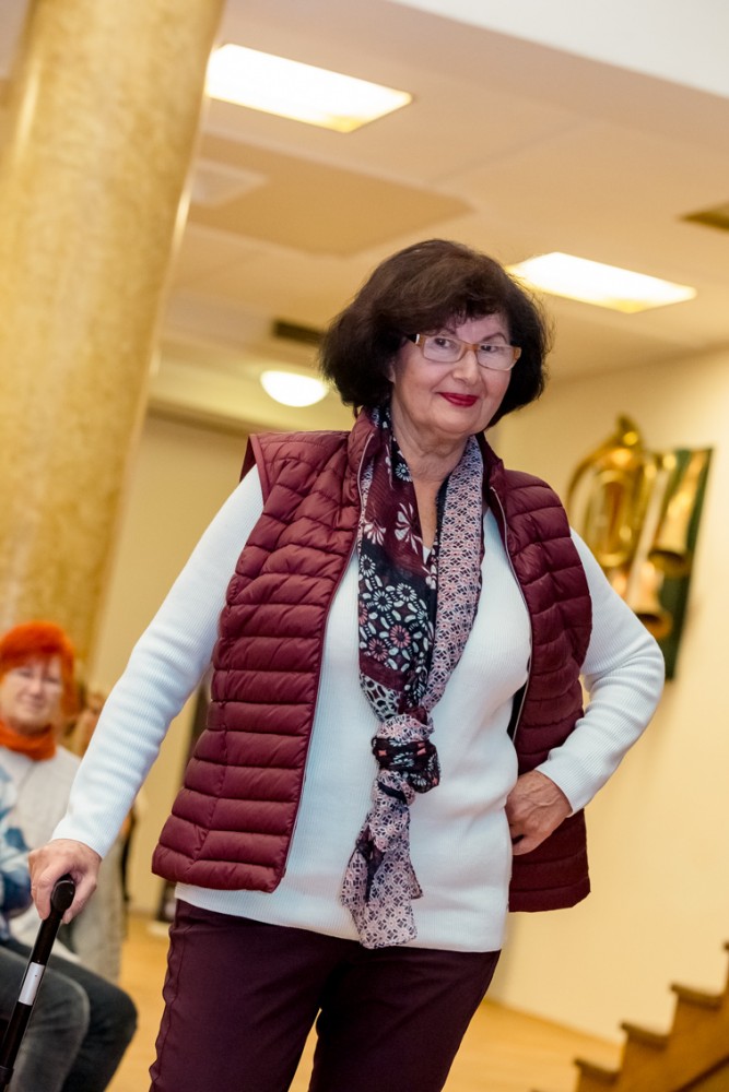 Zralé dámy zavzpomínaly na mládí, čaje, koncerty a tanečky. Nyní šup, šup, seřadit se a módní přehlídka začíná. Předvedly svrchní ošacení různých velikostí Gerry Weber, Oděvní galerie, klobouky (Tonak), brýle (Optika). Vhodné na vycházku, schůzku, akci či posedět u kávy. Hostem večera byla Lady Dermacol Olga K.