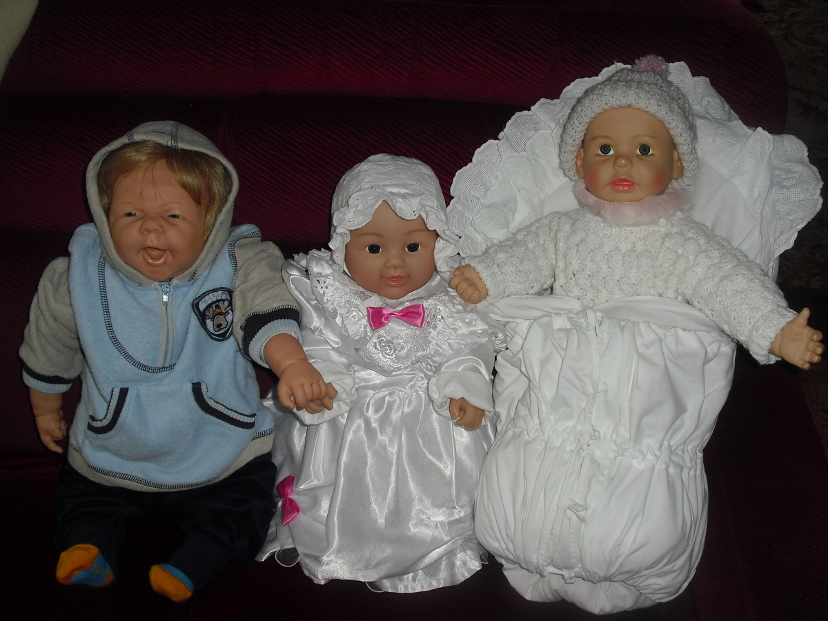 V létě přijeli zájezdem senioři z Bohumína, a protože byli na obědě tady v Konici, tak navštívili i moje panenky a samozřejmě, když jsem viděla, jak vystupuje Helenka z autobusu a nese kočárek a v něm 2 panenky a ještě 2 další paní po jedné krásce, tak jsem měla radost.