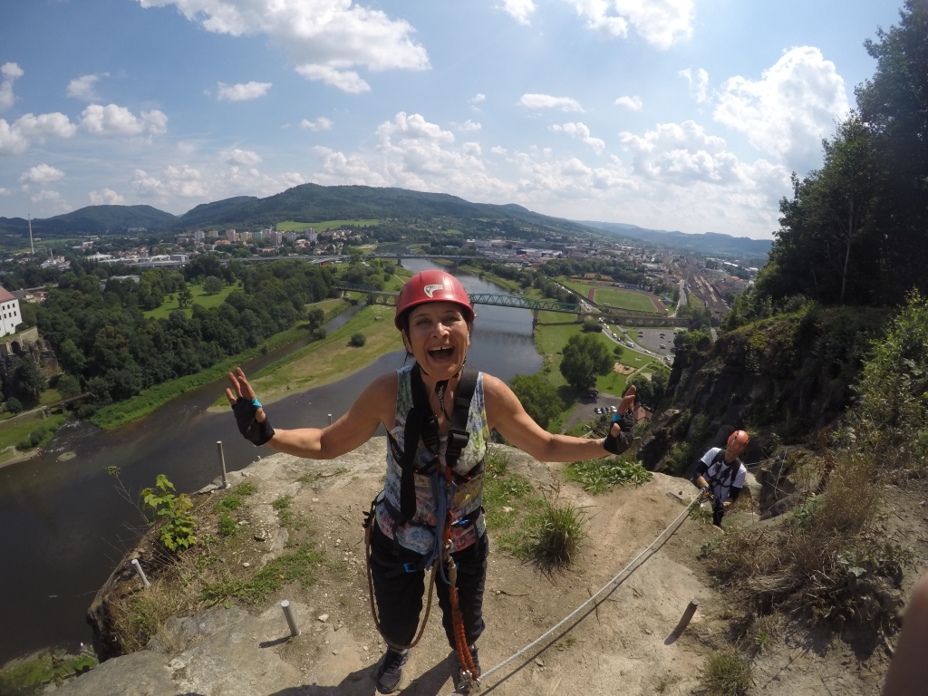 Tak jsem to objednala. Vouchery na Via Ferraty do Děčína. To bude brnkačka - absolvovala jsem už přece spousty různých výstupů, běhů, kurs sebeobrany,  kurs přežití, let v malém letadélku, let balonem, naučila jsem se potápět. Tak co, to dám. Já (62 let), můj syn, moje dcera a její přítel. Všichni se těšíme a všichni si myslíme, že jdeme na trochu náročnější procházku po horách.