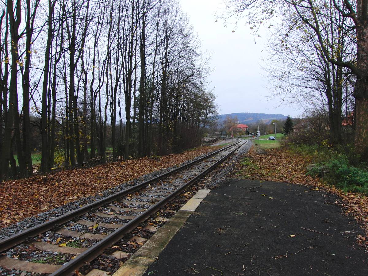 Železniční trať prošla v letošním létě rozsáhlou opravou, nádražní budova a její okolí je však ve velmi špatném a neupraveném stavu.