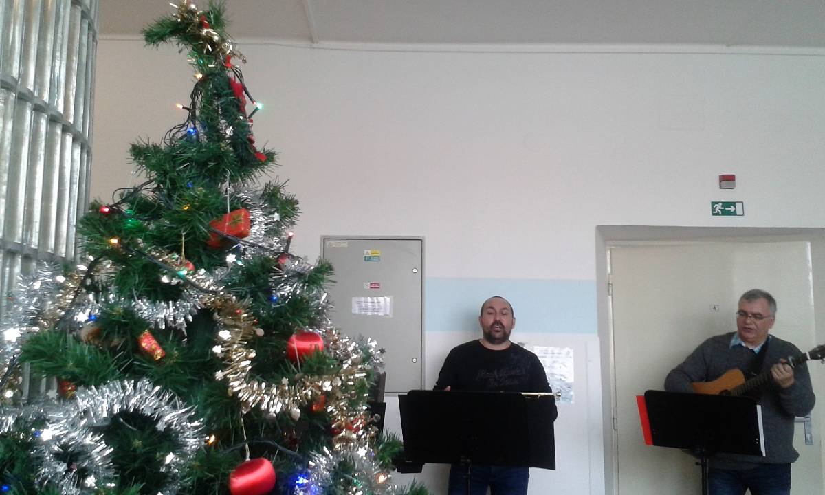 Hurá! O koledy tedy letos nepřijdeme. V deset hodin jsme se všichni (i ti nechodící) shromáždili v jídelně a těšili se na koncert.