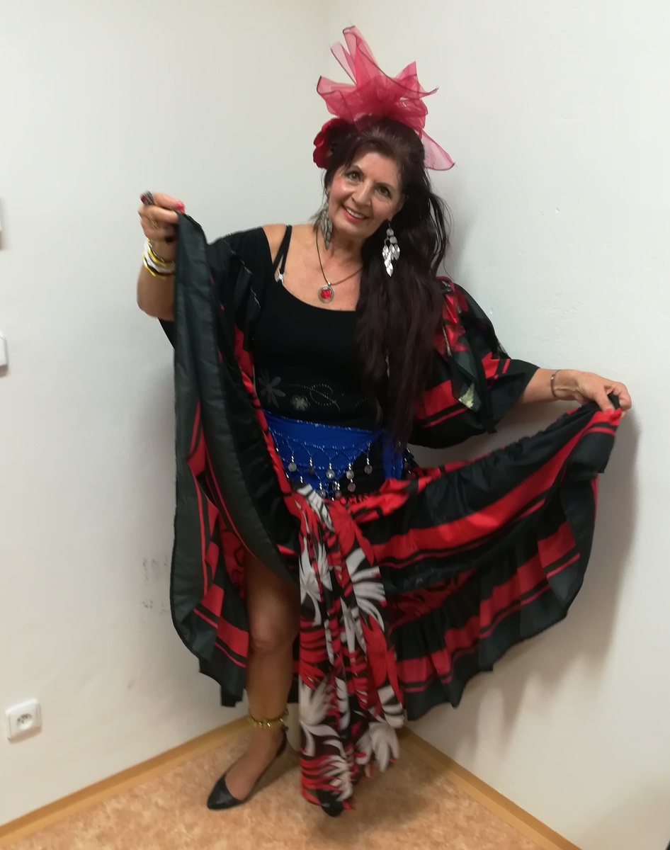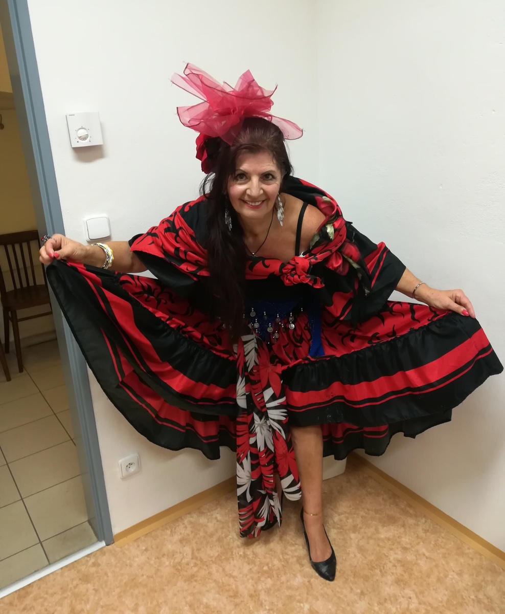 Já jsem měla připravenou scénku Věštkyně i s tancem, kterou jsem si sama vymyslela. Ale protože moje vystoupení bylo tak na 5 minut, tak jsem ji musela zkrátit, včetně tance. Celé oblečení na tuto discipínu jsem si také navrhla sama.