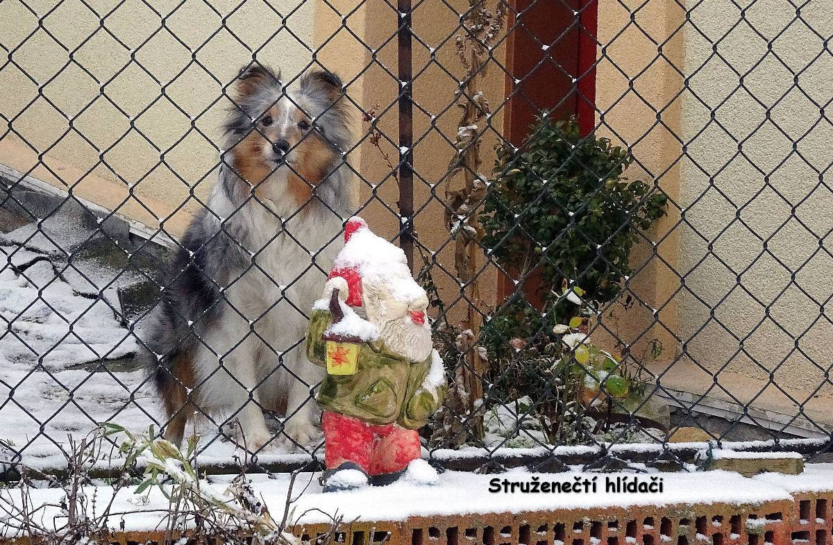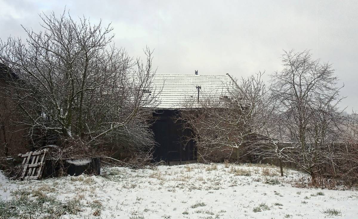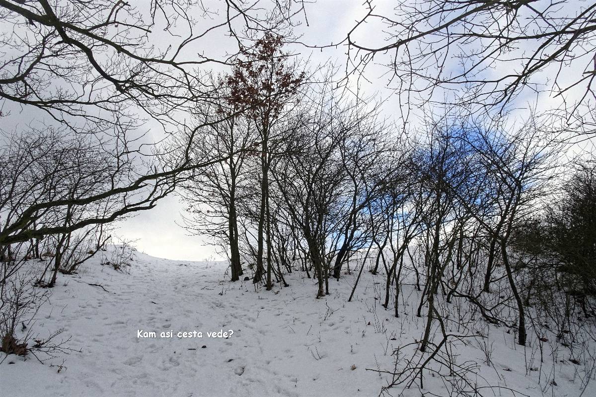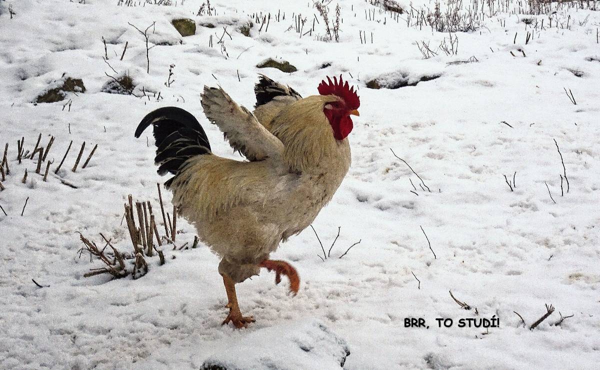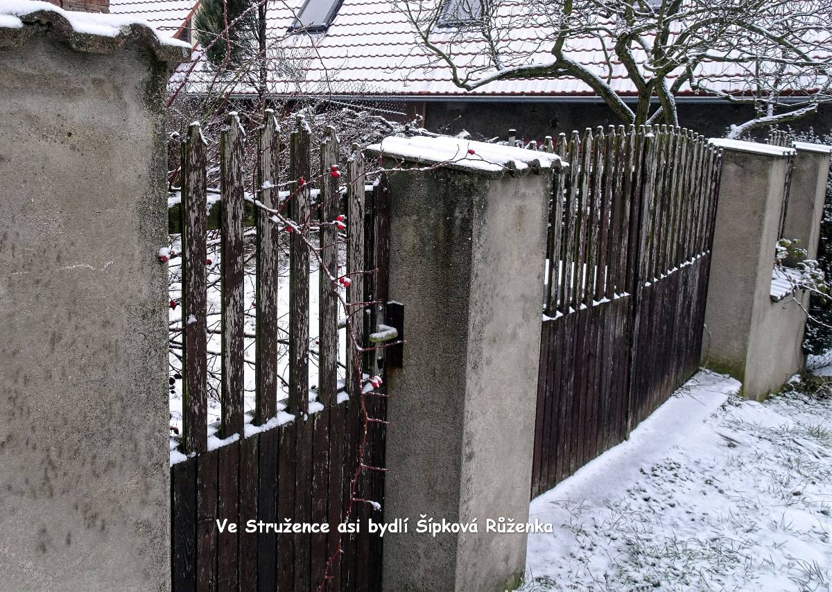 Naše cesta začíná na nádraží v Lovosicích. Po několika minutkách vystupujeme z autobusu v Režném Újezdu, tj. nejpříhodnějším startovním místě pro vycházku na Boreč. Zemi tu pokrývá max. 5 cm mokrého sněhu a viditelnost je téměř nula nula nic. Ale protože my dvě si říkáme bláznivé babky, radujeme se, jak jinak než jako bláznivé babky a vydáváme se na pochod. Ponejprv jsme ovšem odbočily k osadě s poetickým názvem Struženka. Čítá 4 obydlí, jednoho roztomilého pejska a bílého kohouta s harémem. Tady i v okolí se snažím ulovit záběry alespoň lehce zasněžené krajiny.