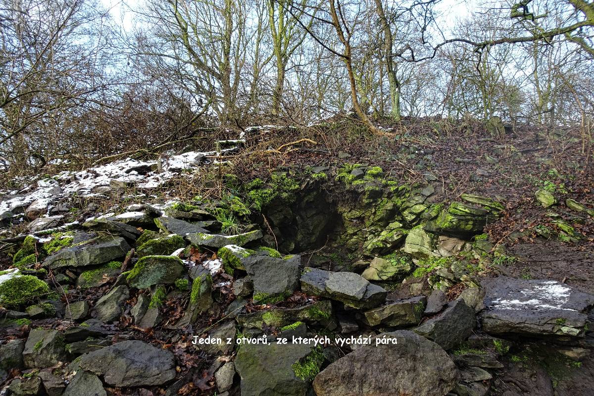 Tehdy při mé lednové návštěvě vrchu byl jiskřivý den s běloučkým prašanem a mrazem - 10 stupňů, tedy ta nejlepší možná kombinace pro spatření onoho podivuhodného jevu. Myslím, že nikde u nás nemůžete spatřit vchod do nitra země jako právě tady a sledovat, jak z něho vychází pára. Kdo ví, možná z pekelných kotlů? Nebo si raději představíme, jak si ohřívají polívčičku permoníci?
