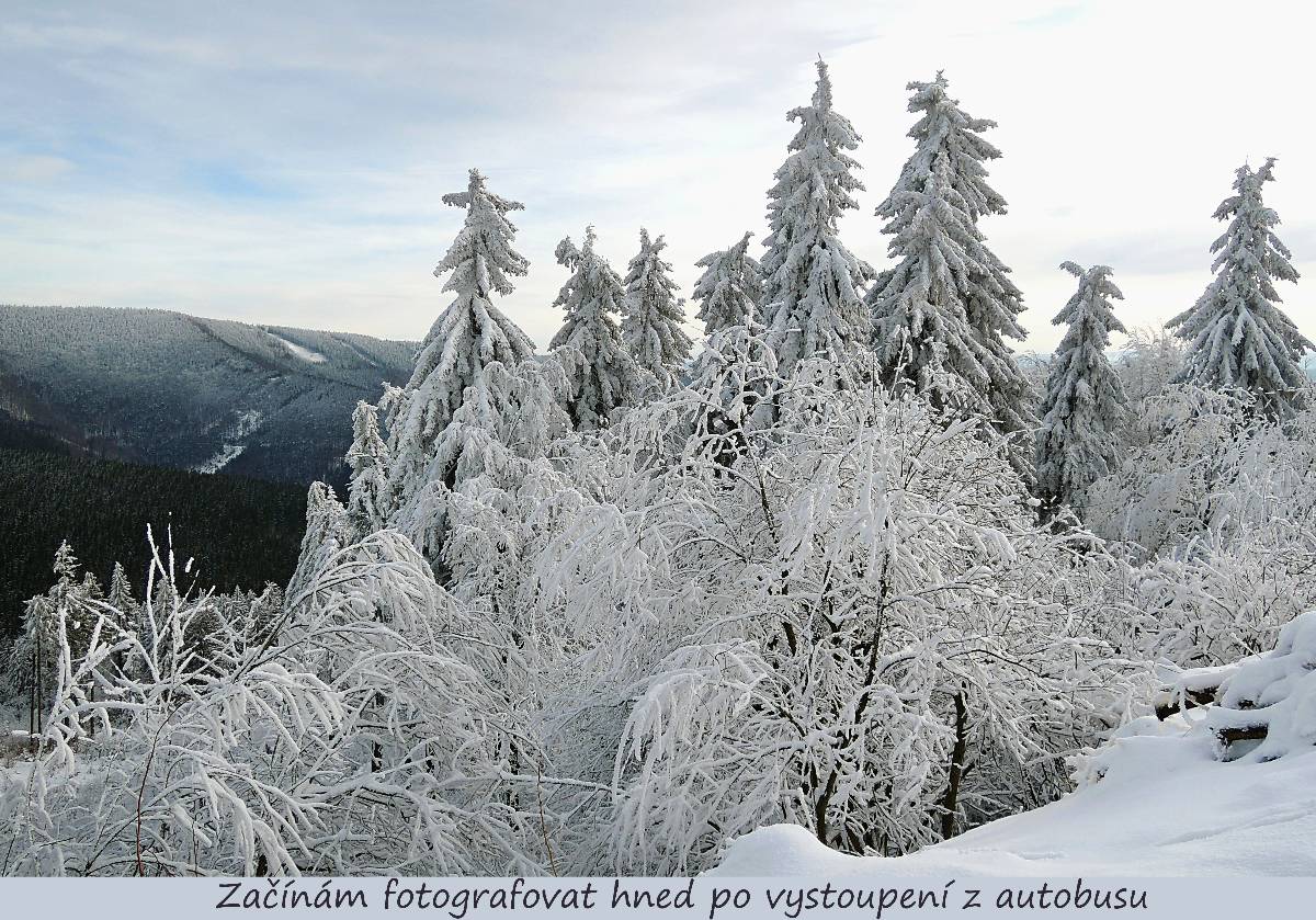 Ve čtvrtek 25. ledna odpoledne jsem se toulala na Pustevnách dvě a půl hodiny a vychutnávala si krásy zimní krajiny. Teplota mírně pod nulou, bezvětří, výborná viditelnost a stromy se sněhovou pokrývkou. Prostě nádhera.