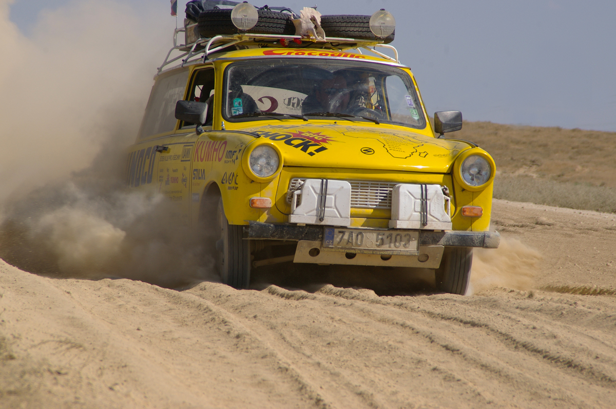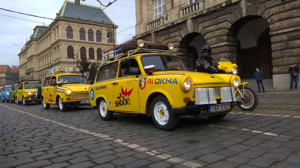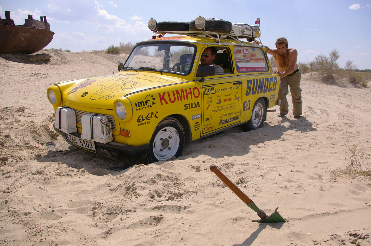 Proti mé vůli. Původní myšlenka byla, že vezmeme trabanta a pojedeme, kam to půjde, až nepůjde opravit, tak ho tam necháme. Auto bylo šedé, škaredé, mělo opravený modrý blatník. Sháněl jsem sponzory, jedním z nich byl Ústřední automotoklub, jehož barvou je žlutá. Řekli, že auto nalakují, ale musí to být ta jejich žlutá. Pak se ukázalo, že žlutých aut je málo a dobře to vypadá.
