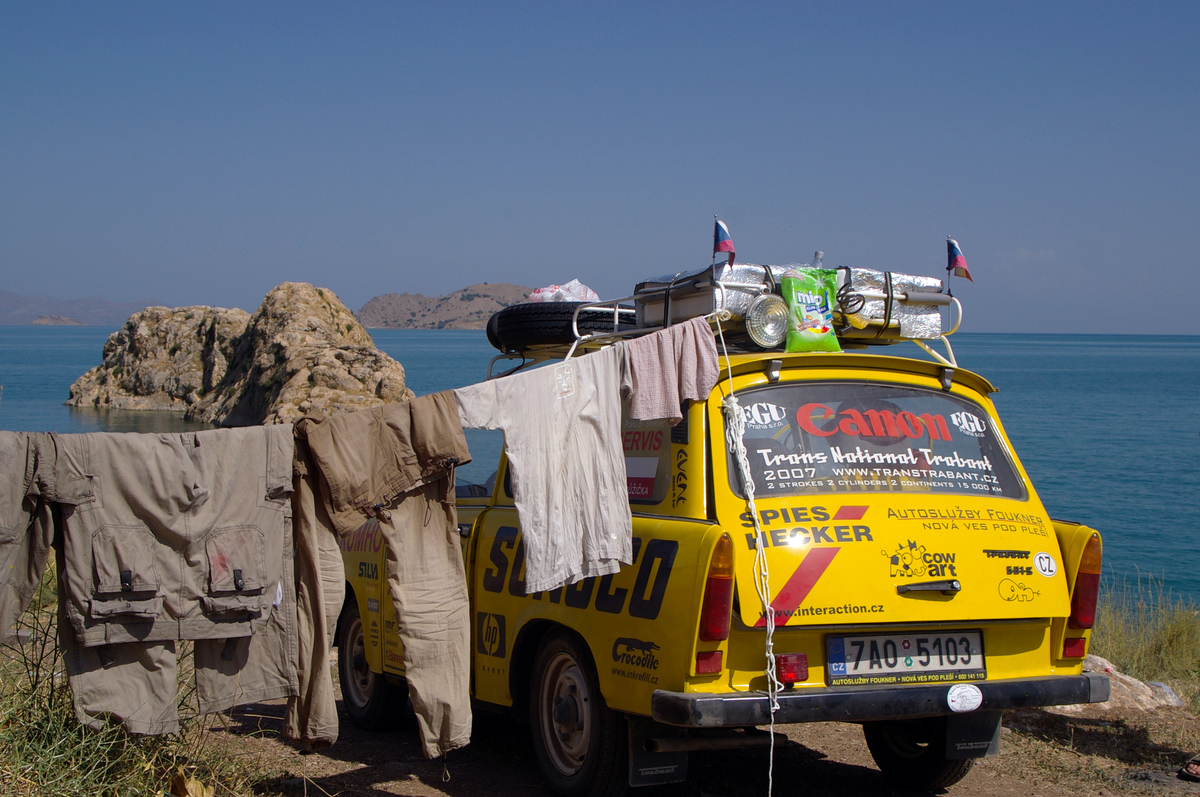 Ta k tomu patří. Celý projekt je velká psychická zátěž. Například takové poruchy aut jsou ve finále podružné, byť k té psychické zátěži přispívají. Když něco nejde, když stojíme na místě, tak nám samozřejmě jde všechno na nervy, ale taky se něco děje. Na cestách je zajímavé pozorovat sám sebe a lidi okolo. Nejhorší jsou lidé, kteří něco předstírají, někam se stylizují. Po třech měsících si strašně lezeme na nervy, ale pak to zase odezní. Já osobně miluji dlouhé přejezdy, protože nemusíme s nikým nic řešit. Mám rád pouště a prázdnotu. Většinou se nám stává, že šest měsíců nespíme v domě, jen ve stanu. Například v Austrálii jsme za ubytování platili dvakrát nebo třikrát. Transtrabant je vlastně cestovka naruby. Mateřská školka hadr. Kupuji osmi lidem půl roku jídlo. Ten má hlad, ten ne. Ten má žížeň, ten chce pivo. Jak malé děti. Přítomnost holek to komplikuje a zpestřuje. Čím více se staráte o dospělého člověka, tím méně funguje. A to je i problém naší politiky – lidé chtějí, ať se o ně někdo stará.
