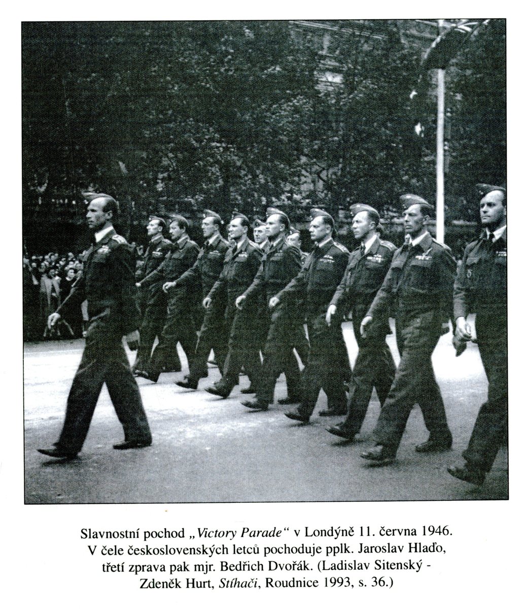 Dvořák se stal ve vlasti náčelníkem štábu československého letectva a poté velitelem Letecké základny v Pardubicích. Užil si ještě pár měsíců slávy, když byl v roce 1946 pozván do Londýna jako jeden z československých letců na setkání s anglickou královnou a účastnil se slavnostního pochodu Londýnem.