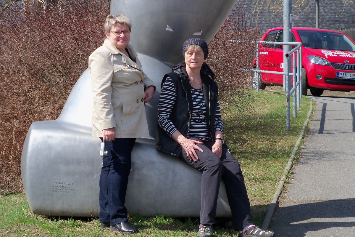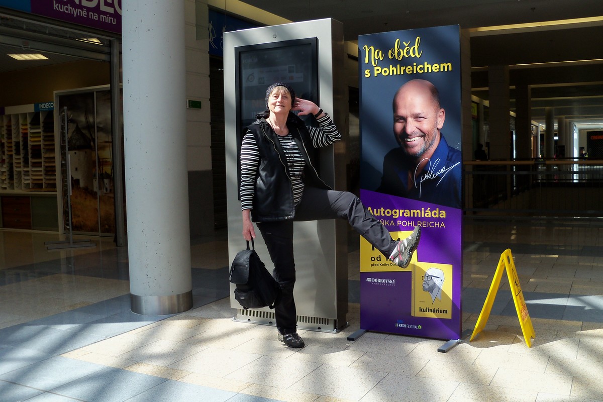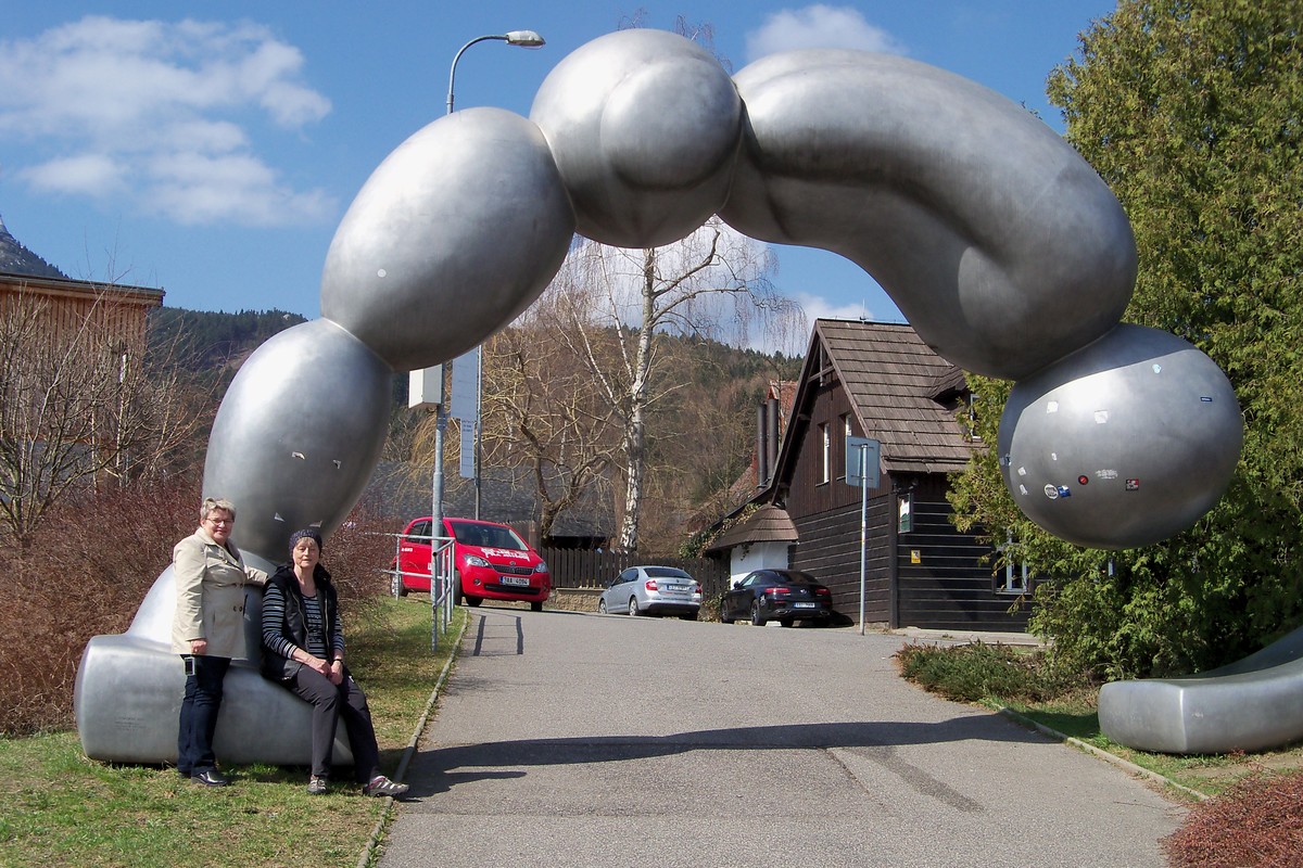 "Haló, haló - kdepak jsi, Evko, já už tady na autobusáku čučím," volá mi Miluška, která přijela o něco dříve, než bylo domluveno. Díky tréninku na túrách vyběhnu kopec k nádraží jako mladé děvče a už vidím postavičku, která mne vyhlíží. Kde jinde, než u veřejných toalet, to, aby si mohla co nejdříve odskočit. Po vřelém přivítání navrhuji plán na celodenní činnost. Hlavní akce - lanovkou na Ještěd padá, lanovka nepremává, roční údržba. Volíme variantu č.2  - Botanická zahrada. Kocháme se pohledem na kvetoucí zàhony narcisů, Míla zakleká a fotí a fotí, to ještě netuší, co ji čeká uvnitř pavilónů. Pastva pro oči - kaktusy, orchideje, keře, stromy, ptáci a velká akvária. Odcházíme asi po hodině směrem ke stanici tramvaje a aby si Míla přece jen ten Ještěd užila, jedeme celým  Libercem k jeho úpatí do Horního Hanychova. Tam viděla na vlastní oči ten " skvost ",  Bránu borců. No, nevyfoť se u ní, to se nedá odmítnout.... Počasí jako malované, tak ještě kousek procházky po lese a hurá na oběd. A že nám vyhládlo. Míla z toho hladovění nezvládá jízdu po eskalátoru, stoupá si na jednu nohu a dělá holubičku, já jsem slabá v kolenou, odmítám jít dál, usedám na zem u zábradlí. Ale to vstávání:(((((, kolemdoucí nikde, Míla nikde, tak to musím zvládnout sama. Hurá, jídlo!!! Sliny se nám sbíhají, nabídka veliká. Míla zvolila bramborák s " něčím " nahoře, vonělo to lákavě, ale na pohled ,- nevím, nevím. Uf, to jsme plné, odfrkneme si v tramvaji při jízdě ke mně domů.