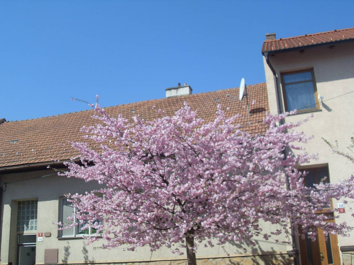 A dnes ráno jsem stála u rozkvetlých okrasných japonských třešní, také Vám ukazuji v závěru na jednom snímku. Okrasné třešně - sakury původně pochází z Číny. Ale v Japonsku jsou považovány za symbol jara a čistoty. Po odkvětu lístky květů opadávají a sypou se na zem jako sníh. A já se přímo kochala u nádherně rozvetlých třešní a jedna paní přichází blíž a říká mi, že přijela z Brna a tam už květy opadaly. Po chvíli ještě dodává - hlídám tam 4letou pravnučku a jak jsme tak chodily na procházku a květy se sypaly na zem, tak malá dívenka měla úžasný návrh: "Babičko, padá sníh, vytáhneme sáně..."