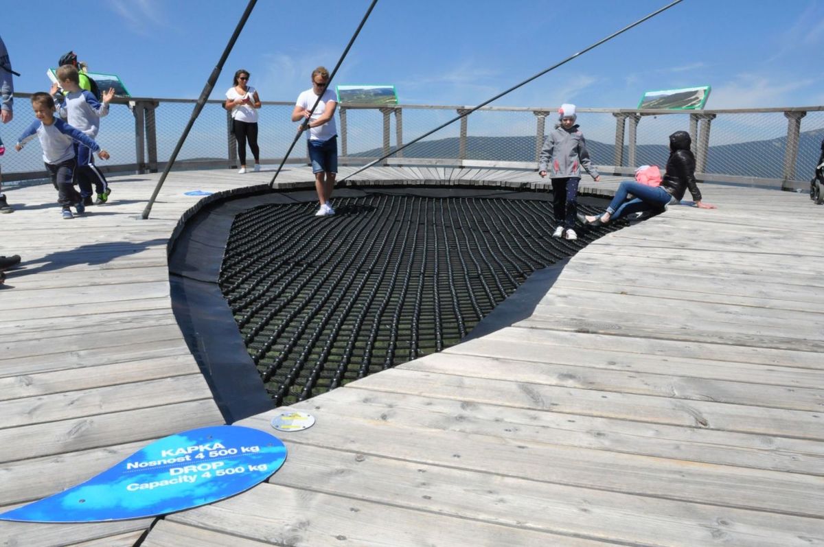 Bavit to zde bude i vnoučata. Na stezce jsou sítě určené k prolezení z jednoho patra lávky do druhého.Na vrcholu stezky se nachází „kapka“,síť ve výšce 50 metrů. Když se na ni postavíte, vidíte dolů (doporučuji jen pro otrlé). Odvážné děti (ale i dospělí!!!) mohou k cestě dolů využít parádní 100 metrů dlouhý tobogán s okénky a několika klopenými zatáčkami.