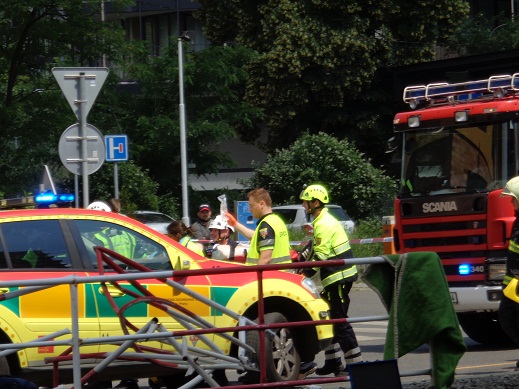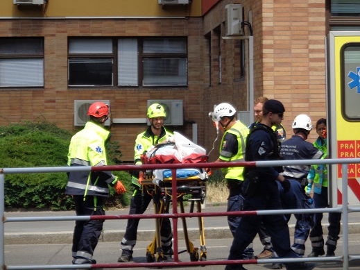 Ouvej! Vozovka byla přepažená blikajícím policejním vozem. Kolem se motala hasičská cisterna, směrem do protisměru. Vyběhl jsem za roh a uviděl manévry bezpečnostních složek města Prahy.