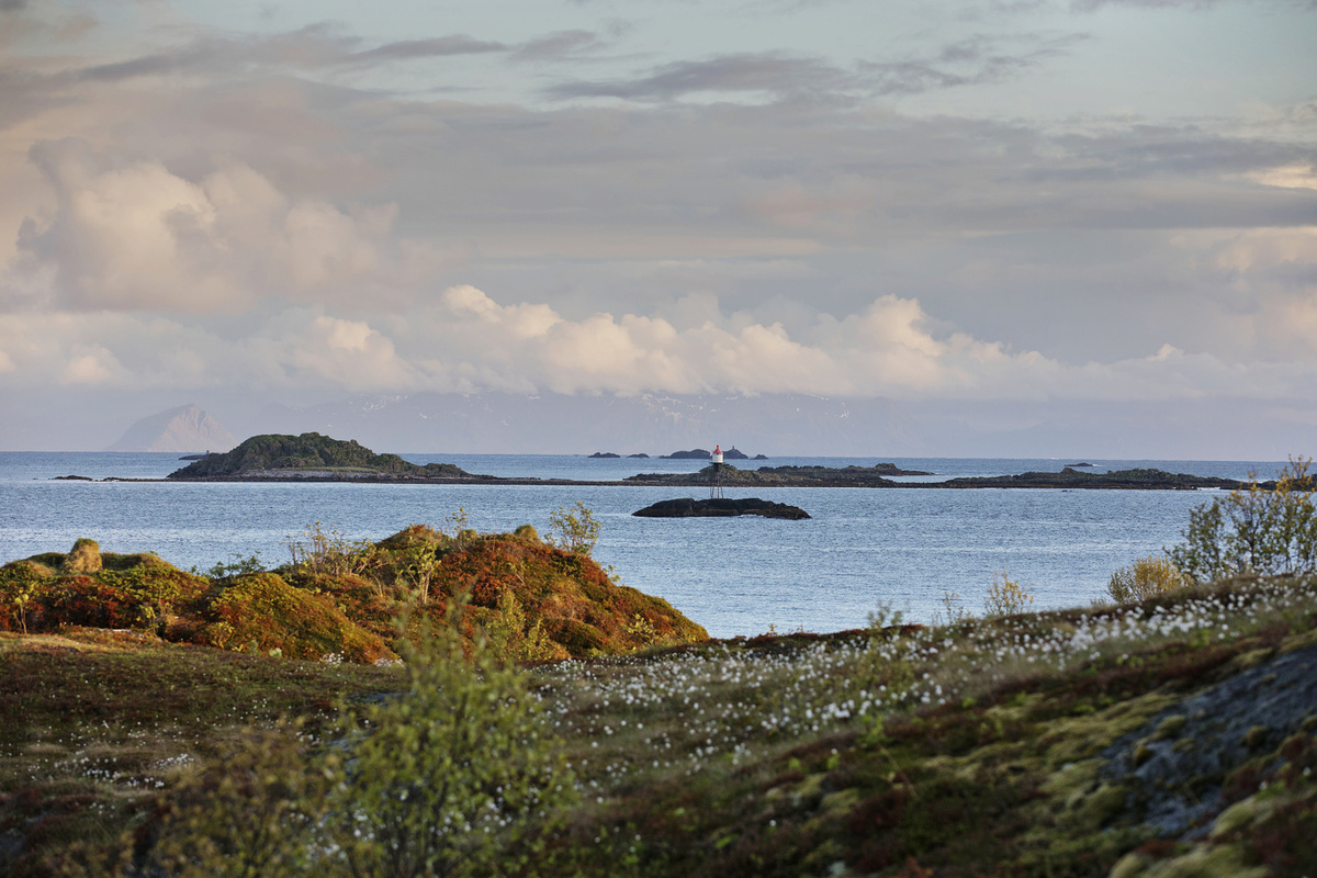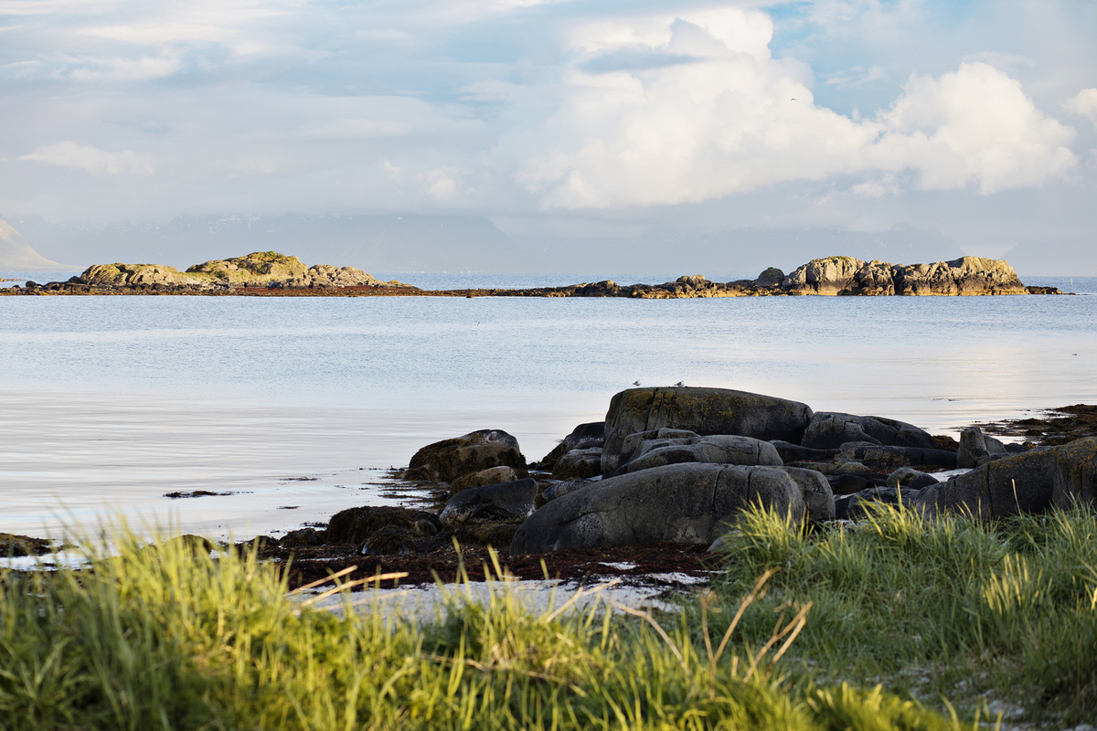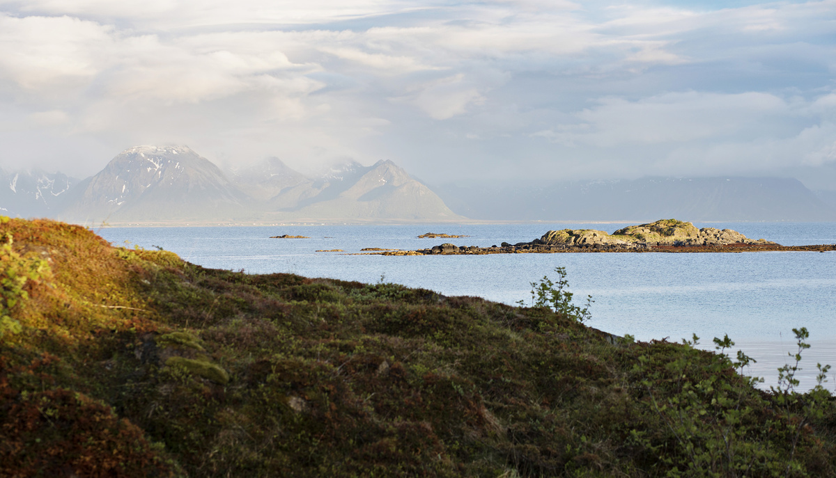 Blíží se červnová půlnoc, přestalo pršet a sluníčko začalo trochu hřát. Halí zelené kopce do teplého hávu, takového toho podzimního odpoledního odstínu. Akorát tady dnes slunce nezapadne. Na ostrovech Lofoty a Vesterály za polárním kruhem jsou na konci jara polární dny.