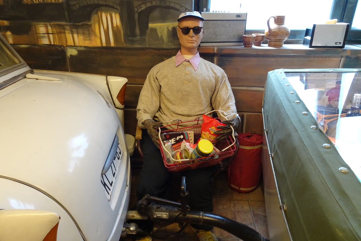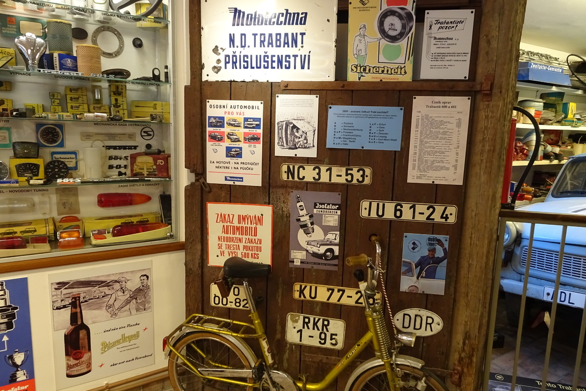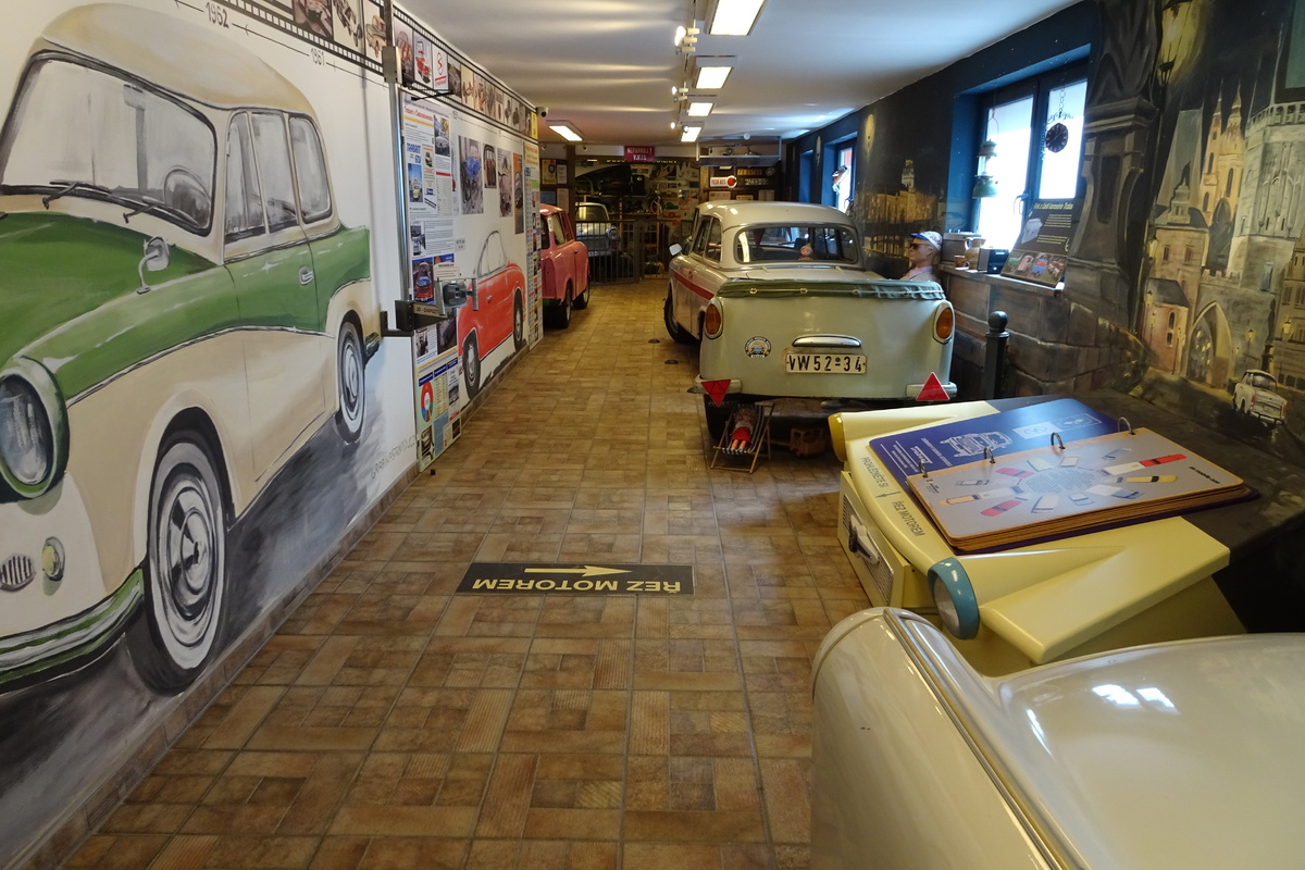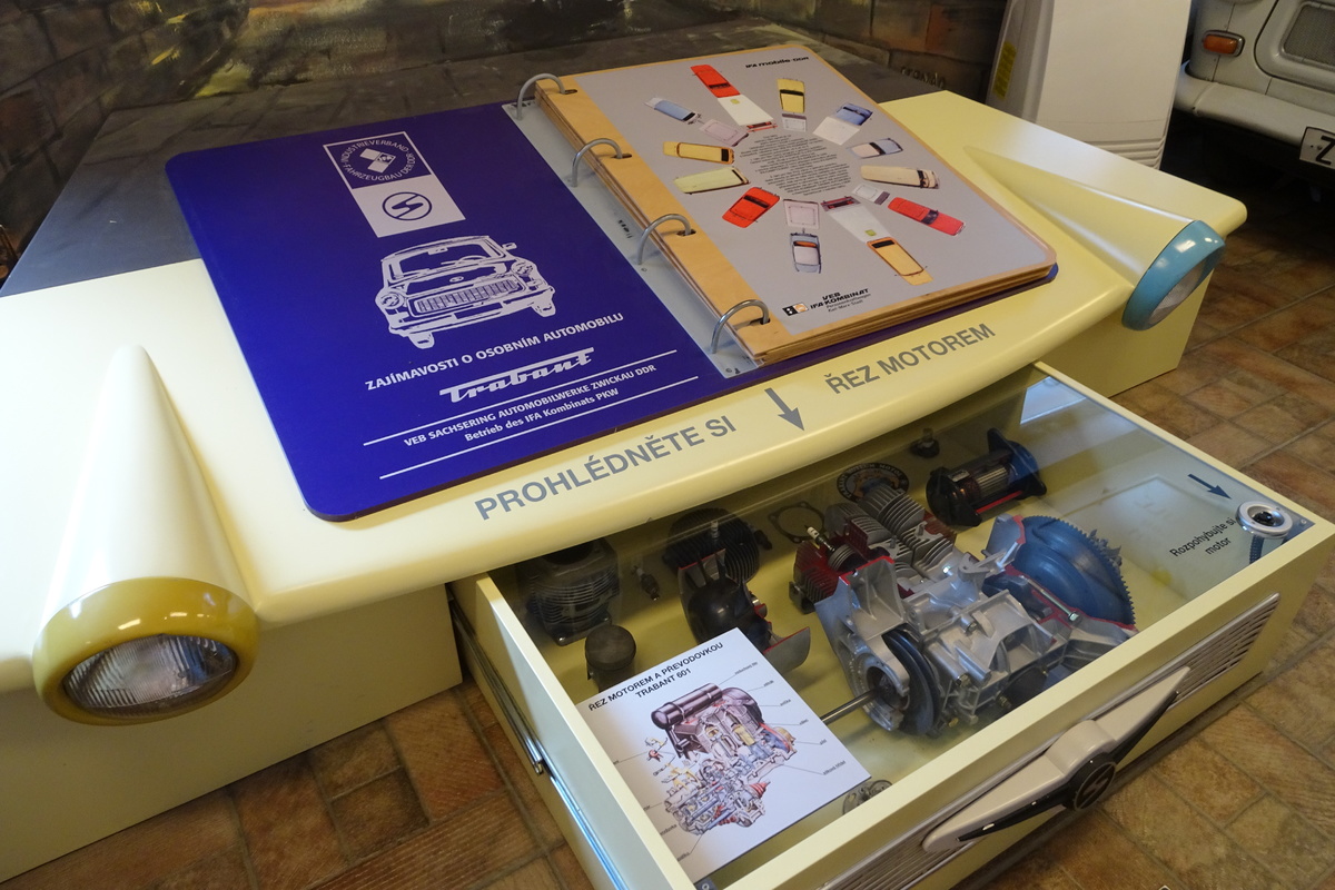 Můžete si vyzkoušet řazení, prohlédnout si model tehdejší servisní dílny, mnoho modelů autíček, trofejí ze závodů, dokumentů, diapozitivů, předmětů z výbavy trabantů. A kdo občas jezdil do NDR, připomene si tu i řadu spotřebních předmětů, jaké jsme kdysi z NDR, někdy i načerno, dováželi.