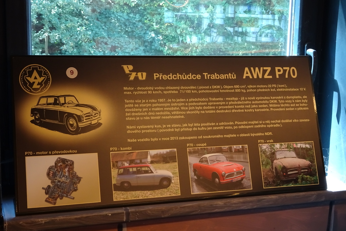 V Muzeu trabantů najdete od předchůdce P70 z roku 1954 vozy od nejstarších až po ty nejznámější z doby, kdy jich i u nás jezdilo nejvíce (P 600 a Trabant 601). Řada končí čtyřtaktem, který se vyráběl krátce do roku 1991.