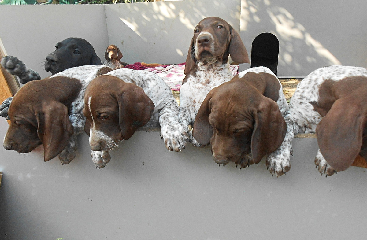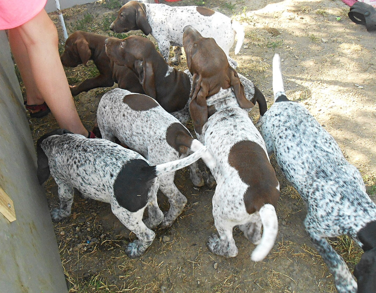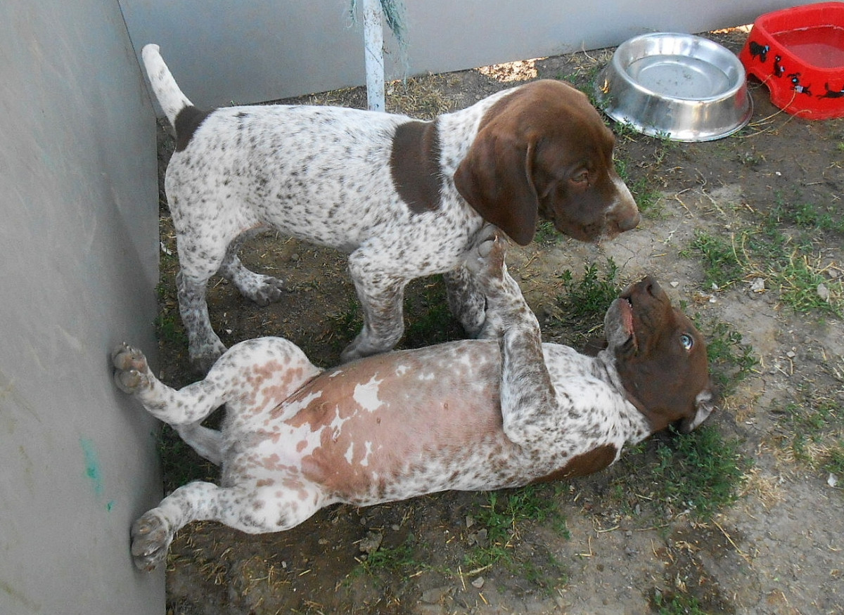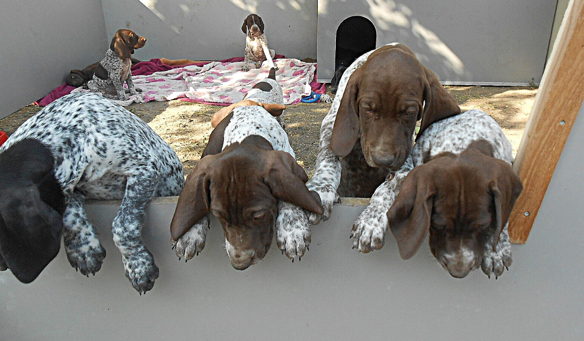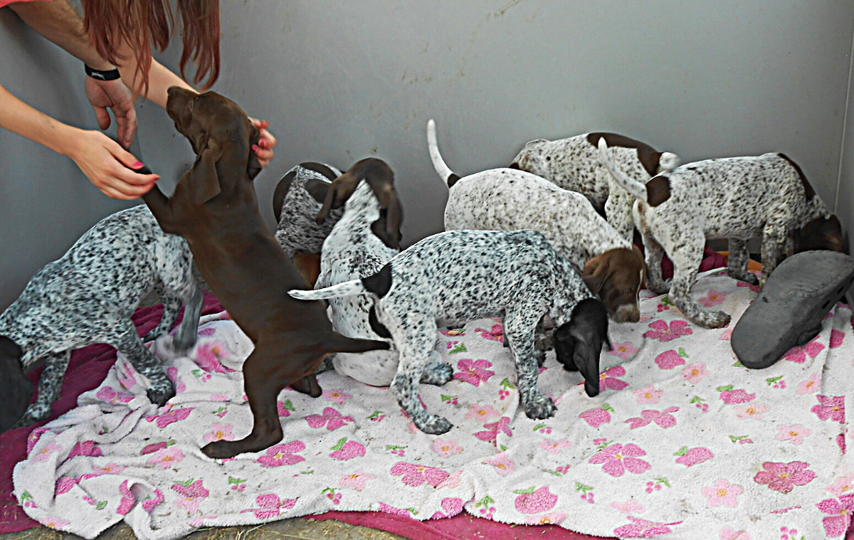Ve středu 18.7. jsme se konečně mohli jet podívat k dceřině kamarádce do Miřejovic na štěňátka. Je chovatelkou německého ohaře a letos má 9 kousků, 6 fenek a 3 psíky. Je to vždycky velká legrace, protože vyfotit 9 rozběhaných a rozpustilých štěňat je snad horší, než pytel blech. Ale pytel blech bych opravdu nechtěla. Jména ještě nemají, ale musí být od D, tak nezávidím to vymýšlení.