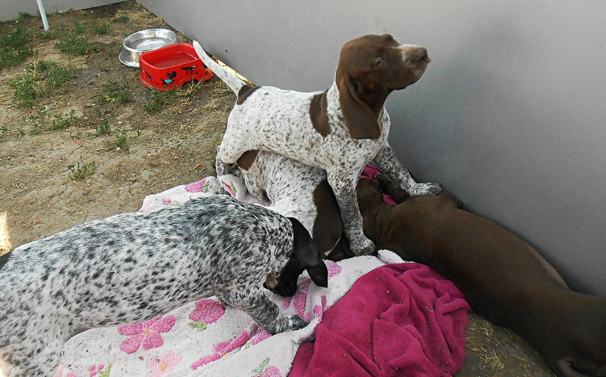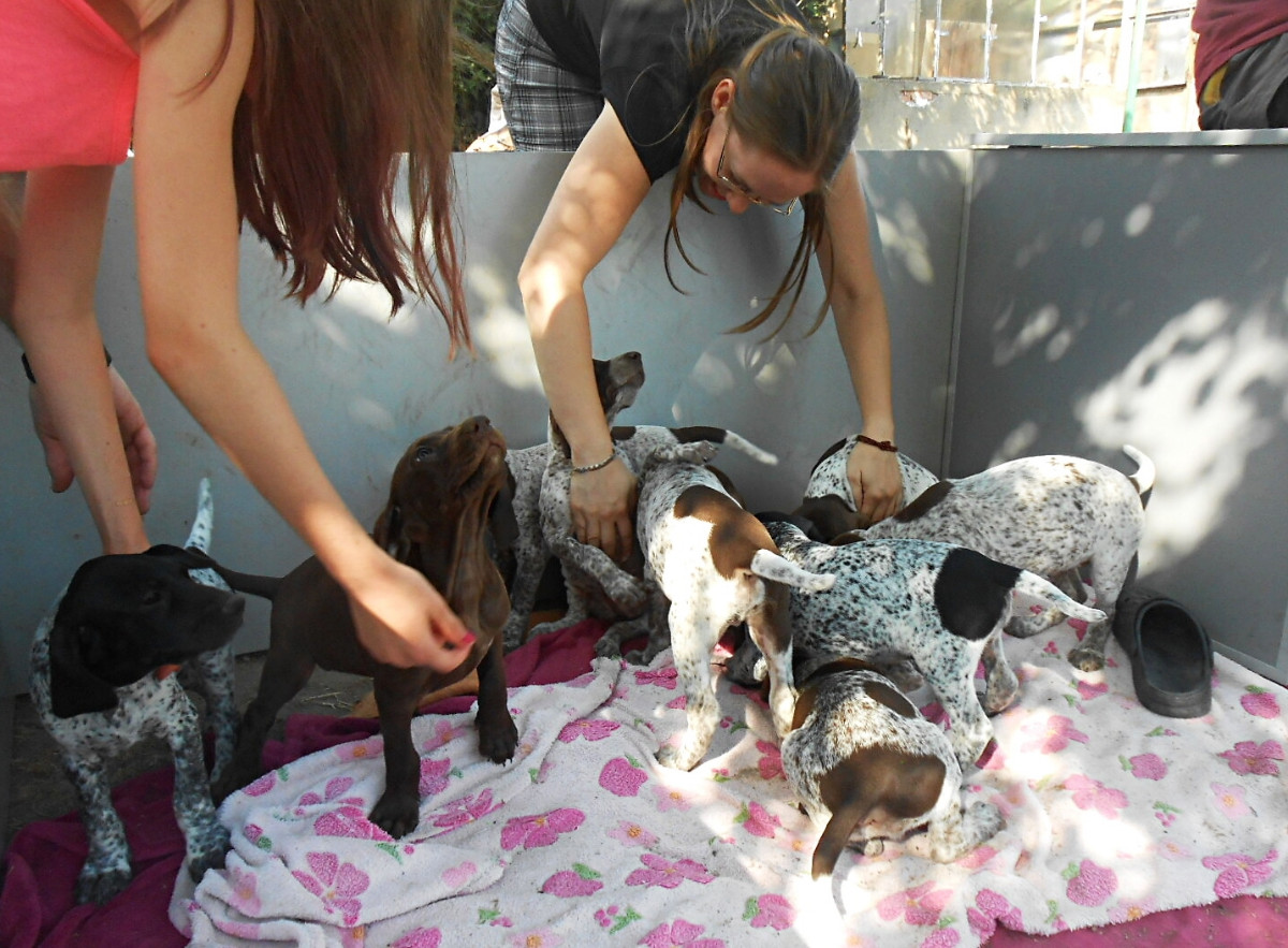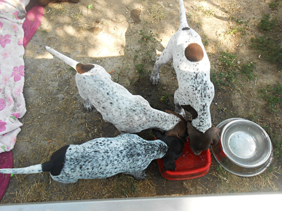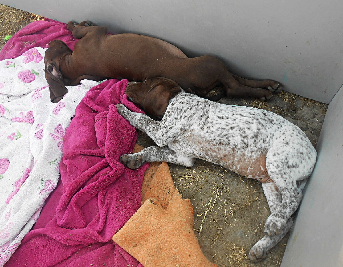 Ve středu 18.7. jsme se konečně mohli jet podívat k dceřině kamarádce do Miřejovic na štěňátka. Je chovatelkou německého ohaře a letos má 9 kousků, 6 fenek a 3 psíky. Je to vždycky velká legrace, protože vyfotit 9 rozběhaných a rozpustilých štěňat je snad horší, než pytel blech. Ale pytel blech bych opravdu nechtěla. Jména ještě nemají, ale musí být od D, tak nezávidím to vymýšlení.