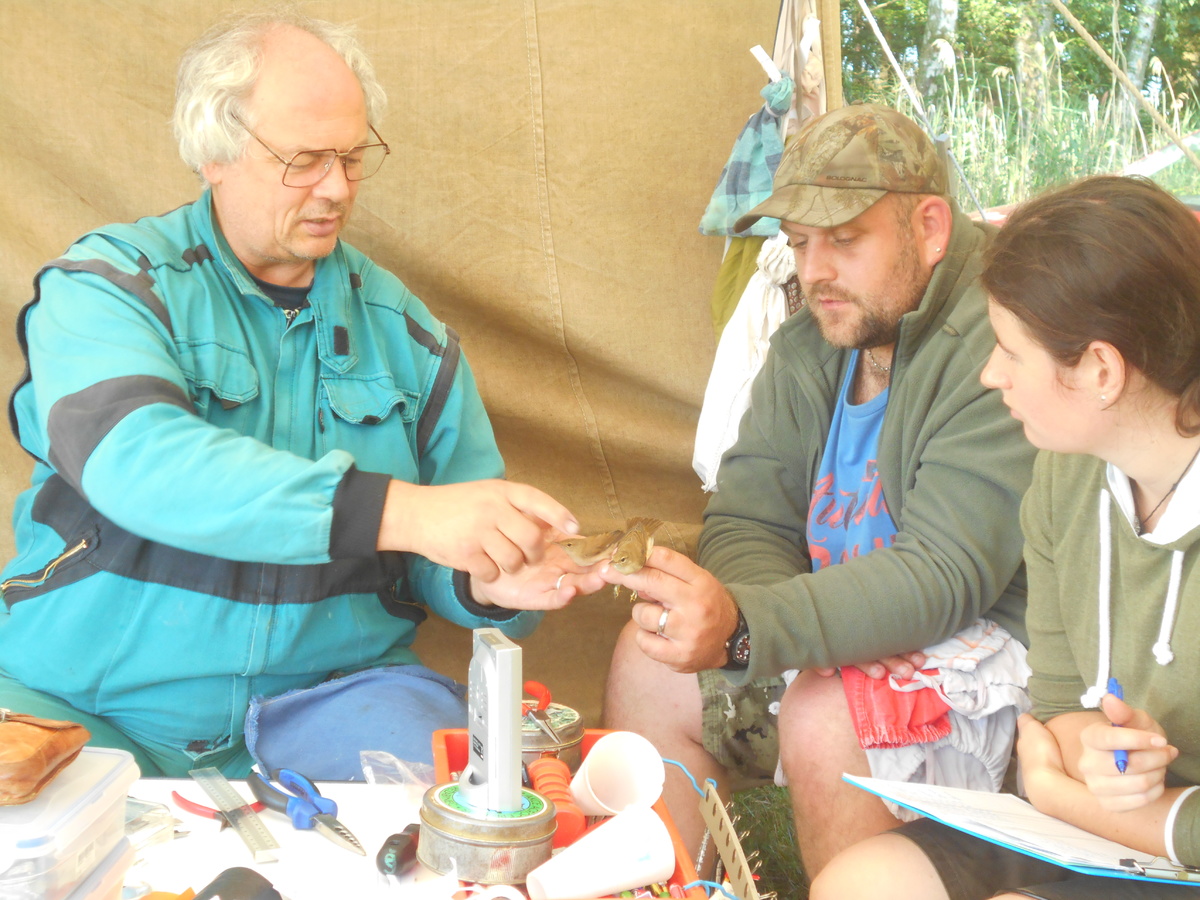 Pod vedením J. Šebestiana začíná kroužkování, měření letek, tuku, váha, stáří atd., potom se vypustí.