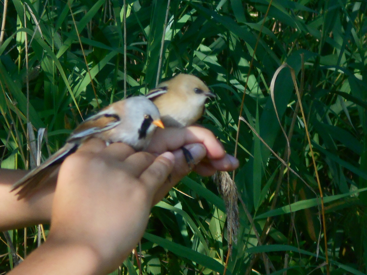 Za mé přítomnosti jsem zachytila několik momentek této práce, několik rákosníků, ale hlavně sýkořici vousatou, a to pár (samičku a samečka), jdoucí hned za sebou. Sameček je pestřejší a kolem hlavičky mu visí tzv. černé vousy.