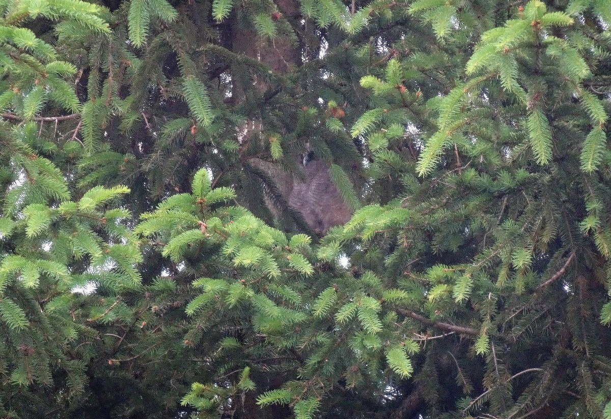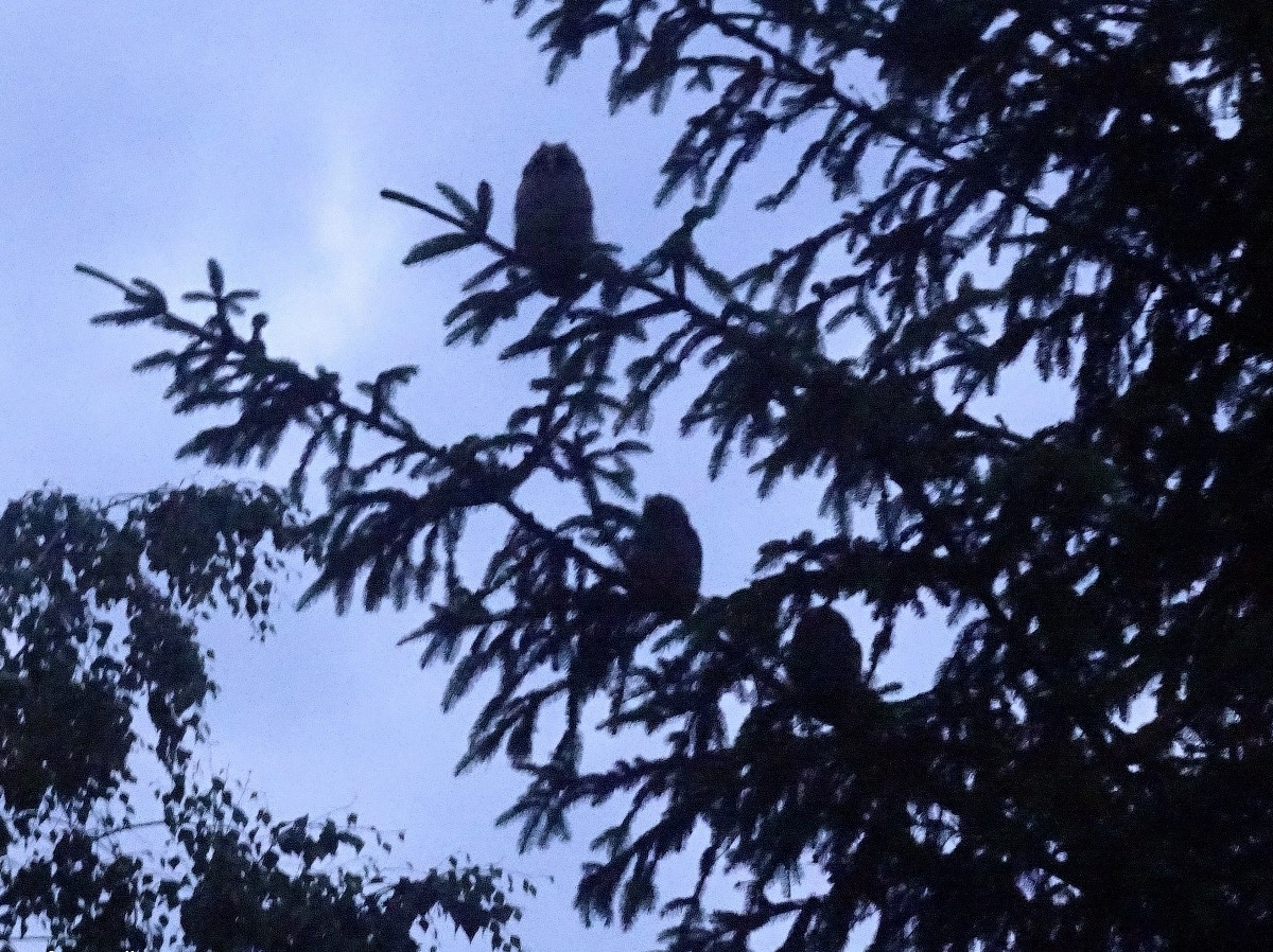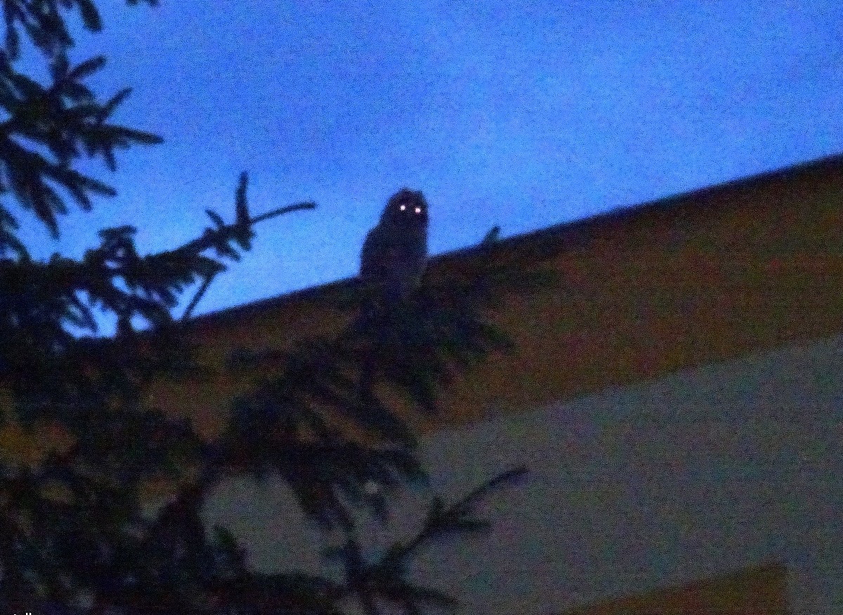 Brzy zjara se za tmy naše sídliště rozeznělo naříkavými tóny. V první chvíli jsem si myslela, že se spustil alarm u některého z aut. To zvláštní houkání v pravidelném intervalu však nepřestávalo. Nepřestalo ani po hodině. Ani po dvou. Ráno však bylo ticho. Ale večer se začalo ozývat znovu. Autoalarm to asi nebude, ale co by to mohlo být? Nedalo mi to a před půlnocí jsem vyšla ven a vydala se po zvuku. Dokud jsem šla pod lampami, bylo mi hej, ale jakmile jsem se dostala do tmy tmoucí, nebylo mi nejlehčeji. Jen jsem zjistila, ze kterých míst se zvuky ozývají a raději se vrátila k domácímu krbu. Další večer jsem nečekala na úplnou tmu, vzala foťák a šla téměř najisto. A ejhle - zvuky vycházely z hustého sídlištního smrku. Seděly tam sovičky (zřejmě puštík obecný) a dávaly o sobě vědět nejen rodičům, ale i širokému okolí. Udělala jsem zkusmo pár fotek a pořídila záznam jejich hlasového projevu. Téměř ze tmy však fotky nejsou dobré a slouží opravdu jen jako důkazní materiál. Další den se houkání ozývalo ještě za světla. Moje postava s foťákem přilákala spoustu dětí, a tak jsme spolu vzhlížely do hustého smrkového větvoví. Sedící sovičky jsme sice jakž takž viděly, ale měly dobré schovávačky a vyfotit se nedaly. A to byl poslední večer, kdy byly slyšet. Někdo mi pak řekl, že mláďata vyletěla z hnízda. A já mám radost, že panelové sídliště si vybraly za svůj domov i sovy, které bychom tu zrovna nečekali.
