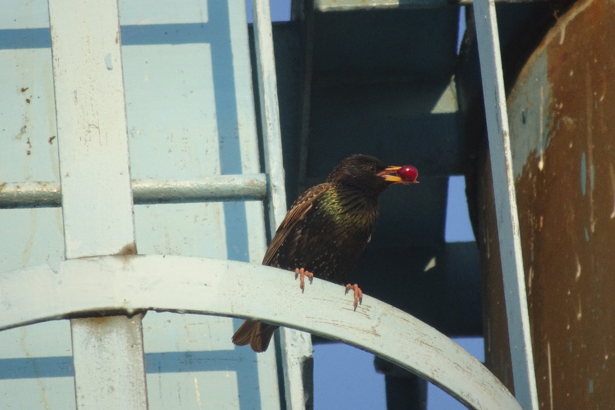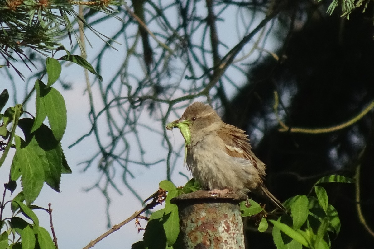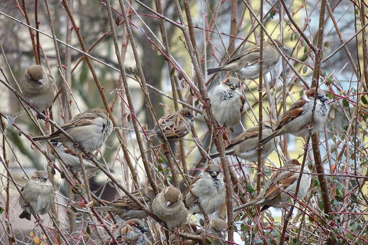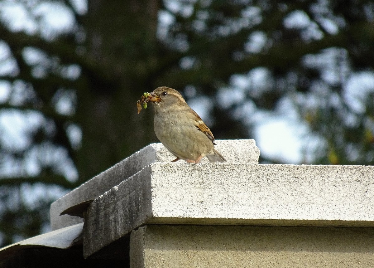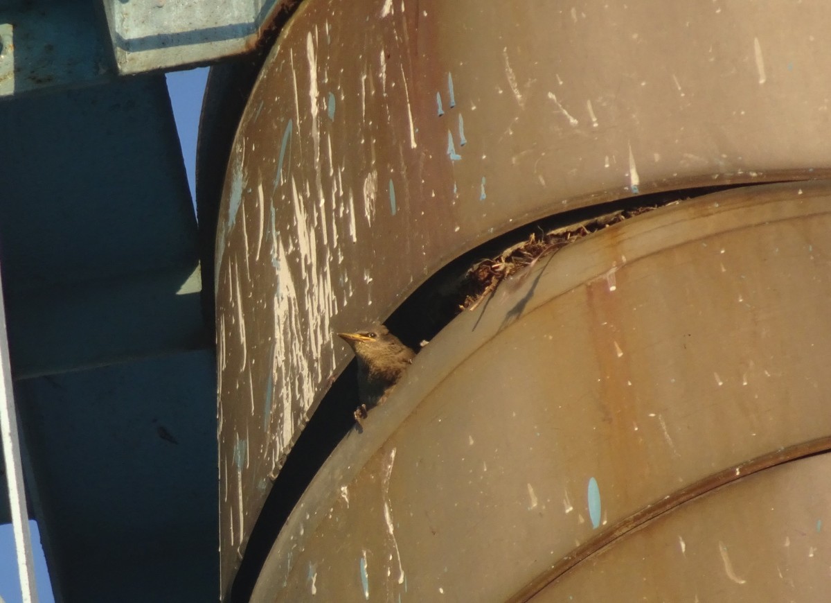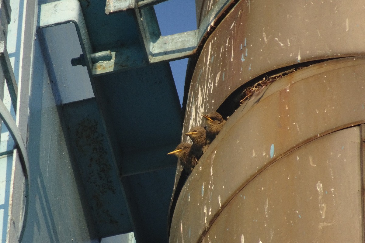 Jednou jsem se v podvečer vracela z procházky. A když jsem procházela kolem komínů kotelny, zaslechla jsem doslova ptačí vřískot. Hledala jsem očima, odkud ten křik přichází, až jsem našla místo, kde mezi prstenci komína vykukovaly ptačí hlavičky. Špačci pohrdli všemi budkami a škvíru si vybrali za svůj byt. Malí rošťáci tam byli jako na pavlači. Zvědavé hlavičky se rozhlížely na všechny strany a mrňata volala rodiče, ať si pospíší s menáží. Máme hlad, máme hlad ... Pozorovala jsem je hezkou chvíli a vůbec se mi nechtělo domů.