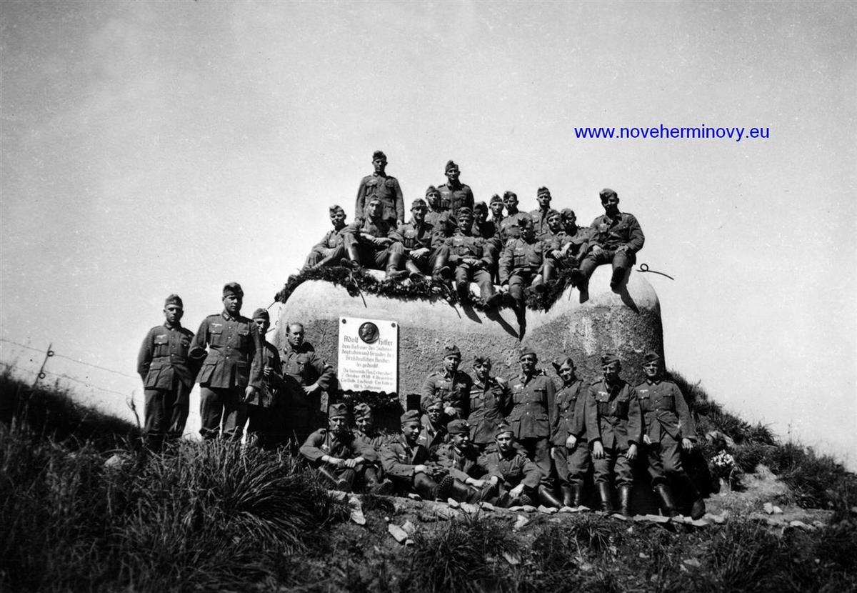 V prosinci 1938 sudetští Němci na betonovou stavbu umístili mramorovou ceduli: „Adolfu Hitlerovi, osvoboditeli sudetského lidu a zakladateli Velkoněmecké říše."