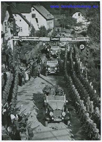 Hitler přijel 7. října 1938 vlakem do polských Glucholaz, odkud se vydal automobilem přes Krnov do Nových Heřminov, kde si prošel opevnění, a pokračoval směrem do Bruntálu, Vrbna pod Pradědem, Zlatých Hor zpátky do Glucholaz, odkud vlakem zase odjel. V Heřminovech ho vítaly davy vojáků a sociální demokraty z vesnice pro jistotu pozavírali do sklepa nedaleké vily Paula.