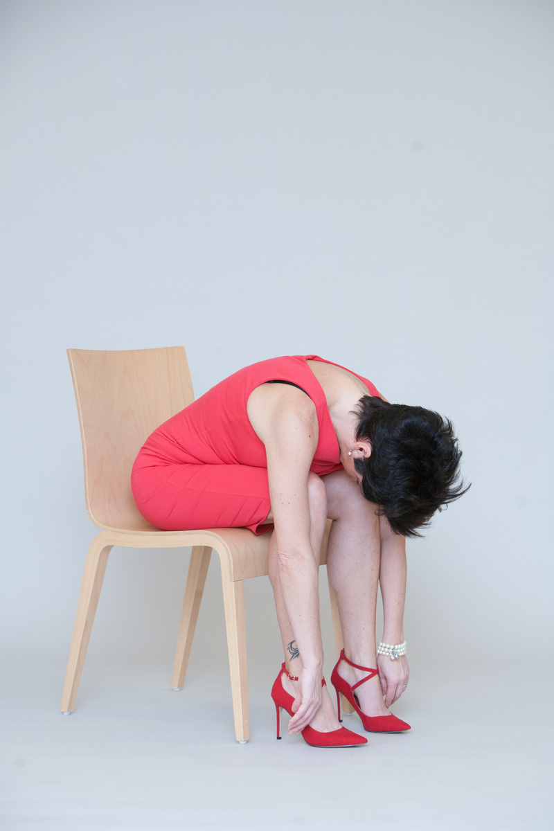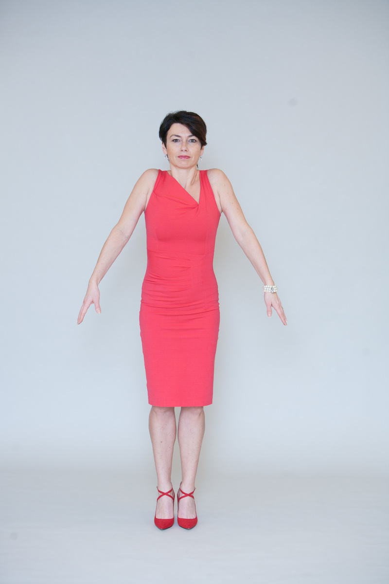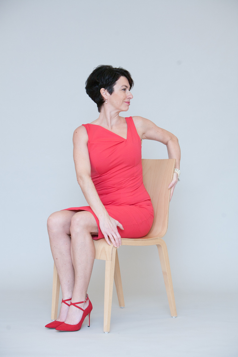 Naučte se sedět s rovnými zády, a pokud to vaše oblečení dovolí, tak s nohama mírně od sebe zhruba na šířku pánve. Hlavu vytáhněte vzhůru, jako by vás někdo tahal za pomyslný drátek procházející páteří až do hlavy. Zpevněte břišní stěnu (kdo se má na to povolené bříško v šatech či úzkých kalhotách dívat, že?), ramena stáhněte dolů. "Zhluboka se nadechněte a pak nechte s výdechem stéct všechny starosti po ramenou dolů a pryč z těla," říká cvičitelka Jana Havrdová prezidentka Českého svazu aerobiku.