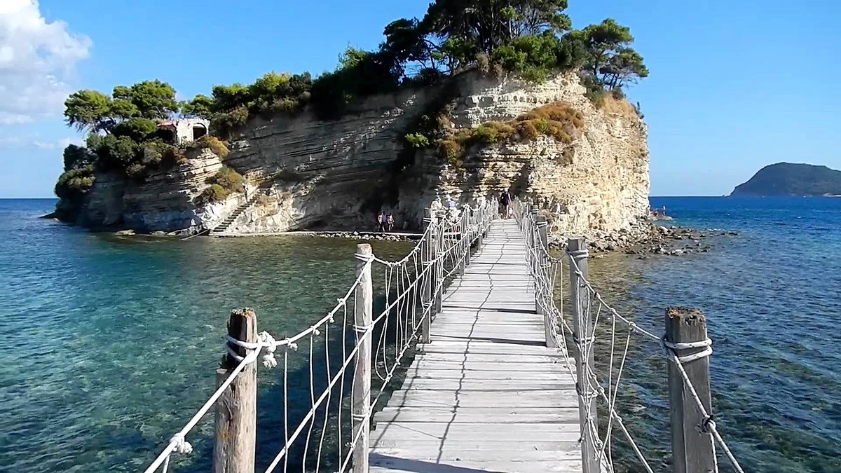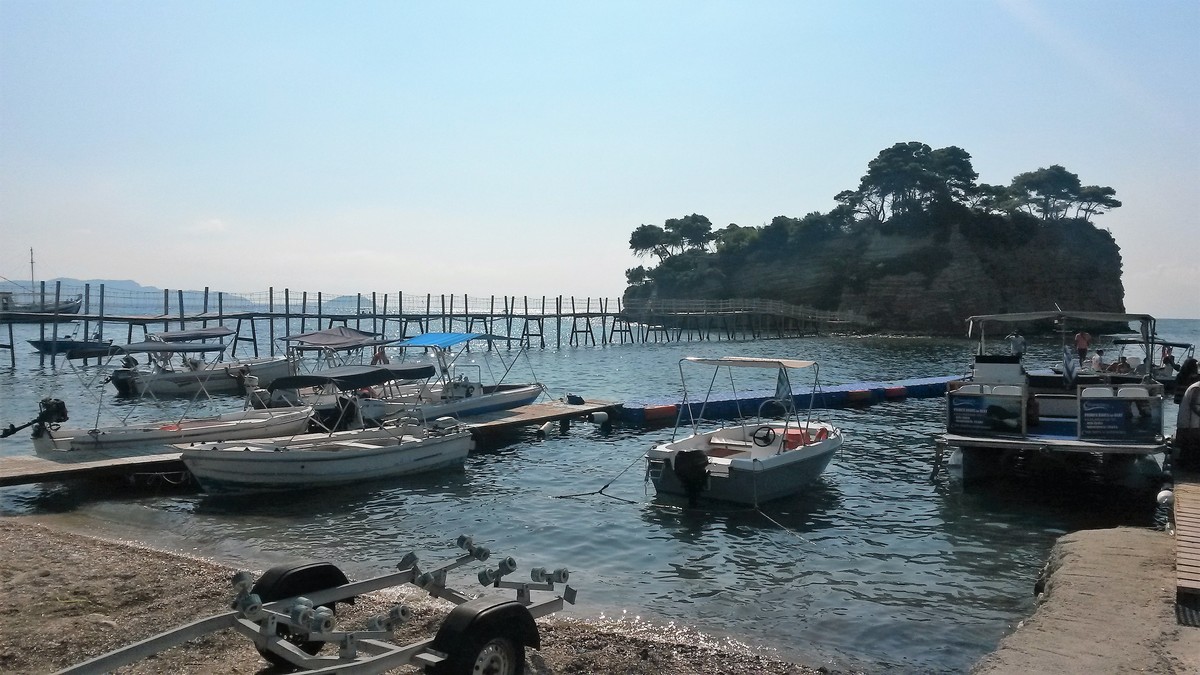 Vzhledem k tomu, že hotely jsou velmi blízko, iluze o koupání v čistém moři fakt není na místě. Právě tato část laganaského zálivu je přitom velmi často zobrazována jako malebné místo. Právě v ní je totiž ostrůvek Cameo. Krásný kousek země, který se od Zakynthosu odloupl při jednom ze zemětřesení. Je spojen s pevninou dřevěným chodníčkem, je na něm diskotéka a na snímcích působí neuvěřitelně malebně. Je jedním z typických motivů pohlednic ze Zakynthosu. Realita je poněkud jiná. Malebný je pouze podle toho, z jakého úhlu ho nafotíte. Jinak je to obyčejný ostrůvek u zapáchajícího přístavu. Bývá hodně přeplněný, je tam bar a diskotéka a kdo na něj chce, musí zaplatit vstupné 4 eura, za které ovšem dostane i nějaký drink.