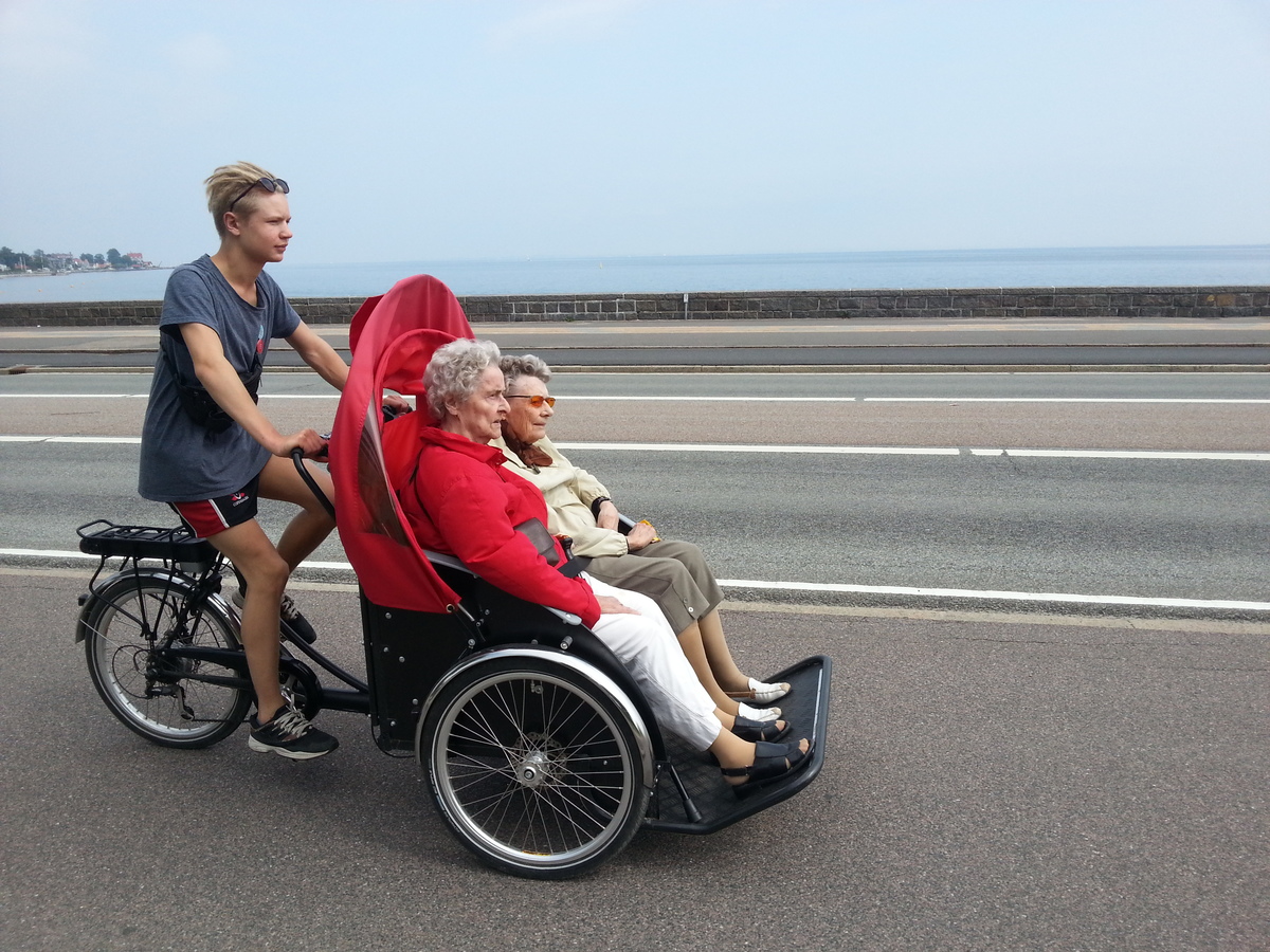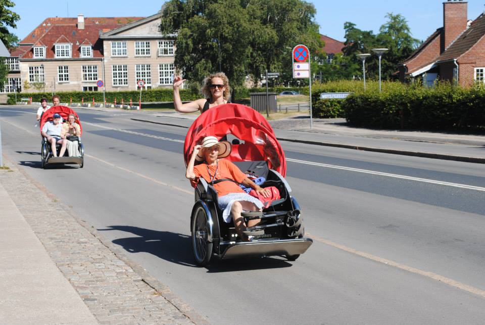 Před šesti lety si dánský manažer a poradce Ole Kassow při svých cestách do práce (pochopitelně na kole) povšiml starého muže, jak každé ráno sedí na lavičce před domem. Jednou se s ním dal do řeči a muž se mu svěřil, jak rád by viděl rodný dům v nedaleké vesnici, ale už nemůže dobře chodit. Ole Kassow si vypůjčil nákladní tříkolkou a v ní vzal 97letého seniora na výlet. Později Ole vyjížděl ven opakovaně i s dalšími seniory. Byli nadšení. Nadšený Kassow napsal kodaňským městským úředníkům, jestli by nefinancovali tříkolky pro pečovatelské domy. Město bylo chytré a zakoupilo hned pět tříkolek pro pět pečovatelských domů. Od té doby se to rozšířilo do celého světa – od Kanady, USA, přes Švédsko, Německo, Filipíny, Pákistán, Singapur až po Nový Zéland. Dnes je 1100 míst, kde jezdí cyklorikši. Používá se to celoročně. Na Islandu mají speciální kola s hřeby.