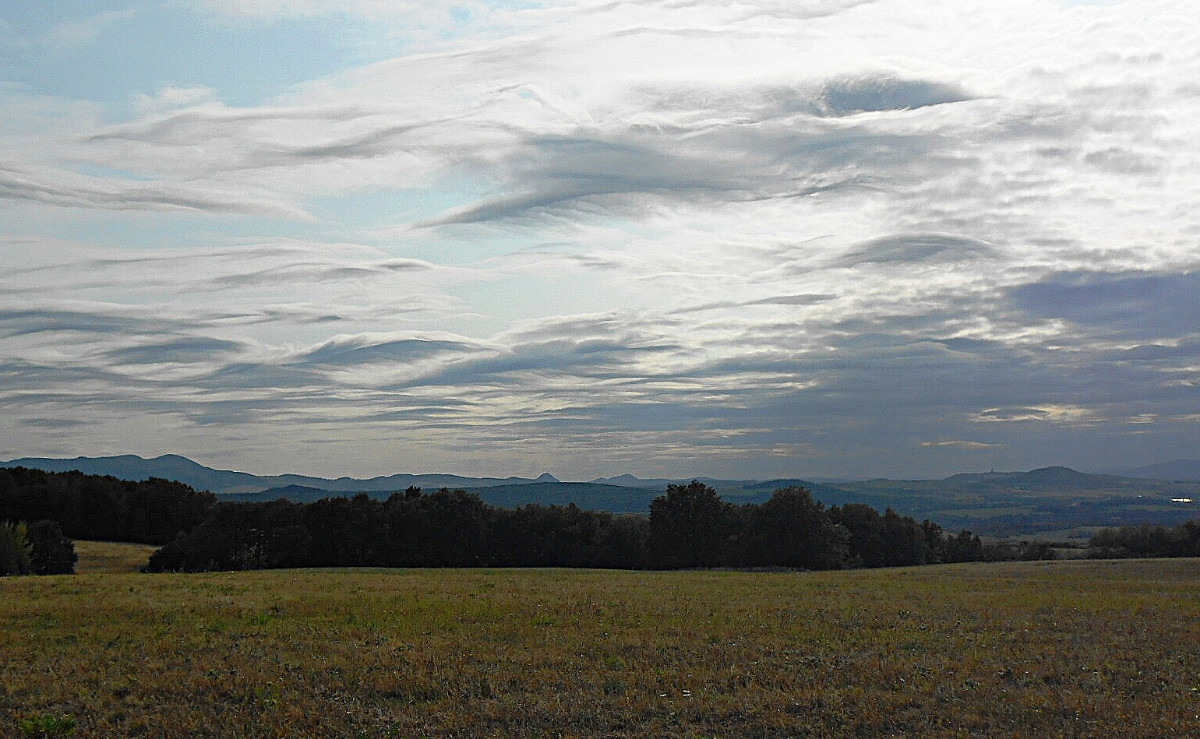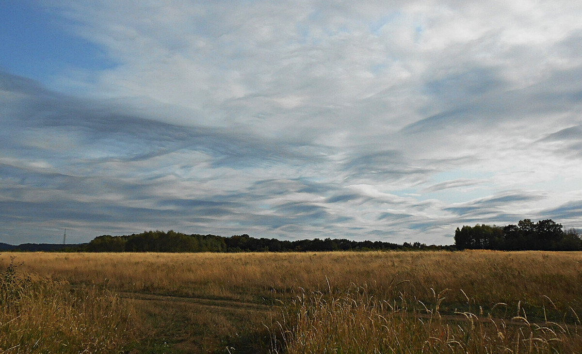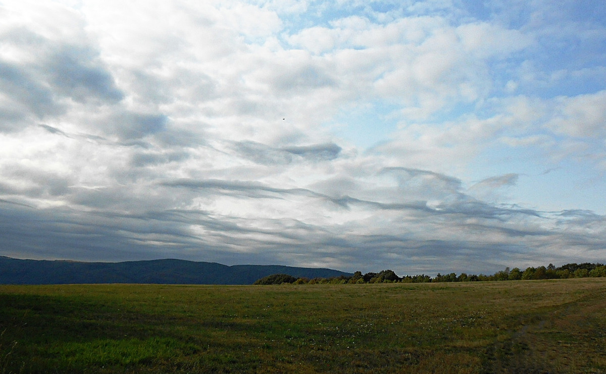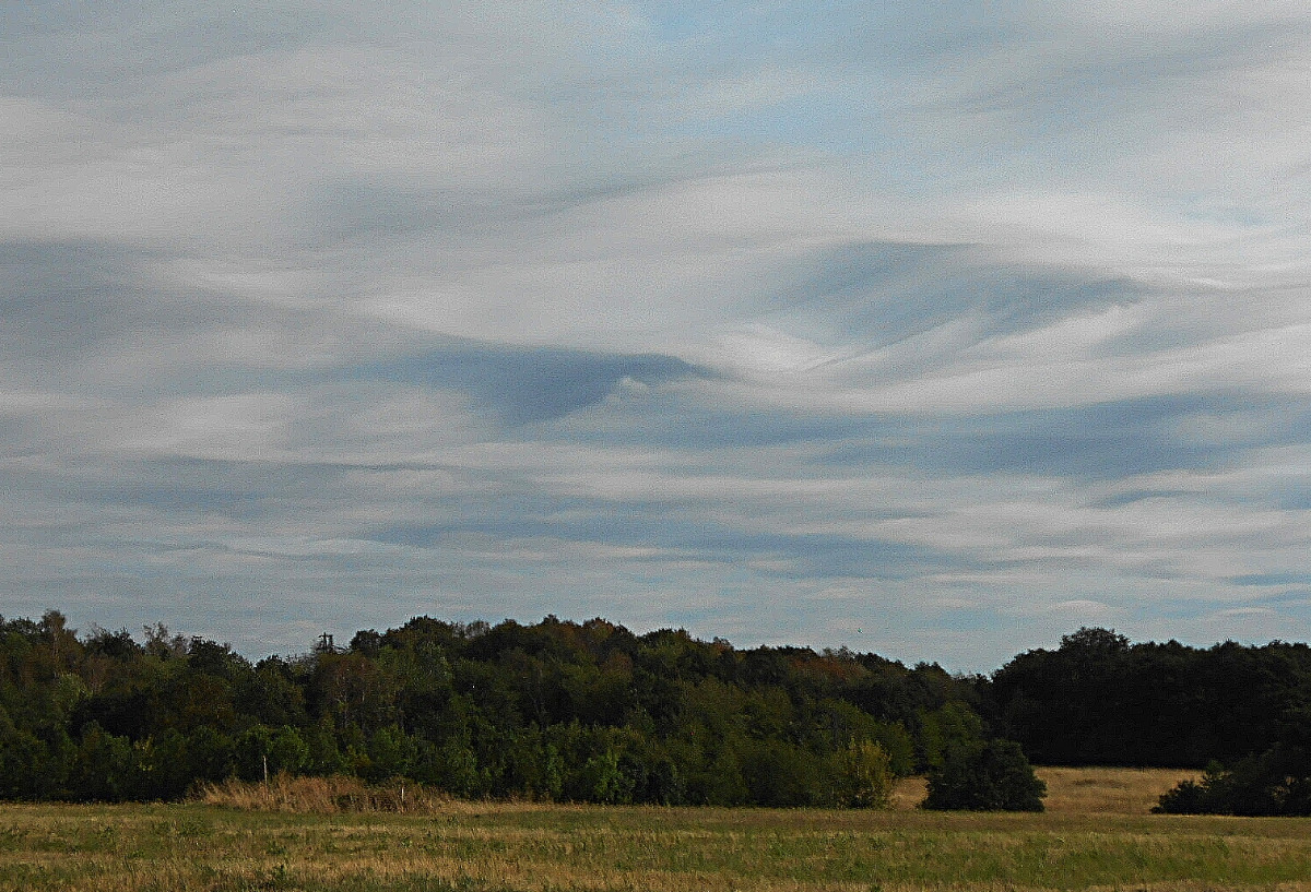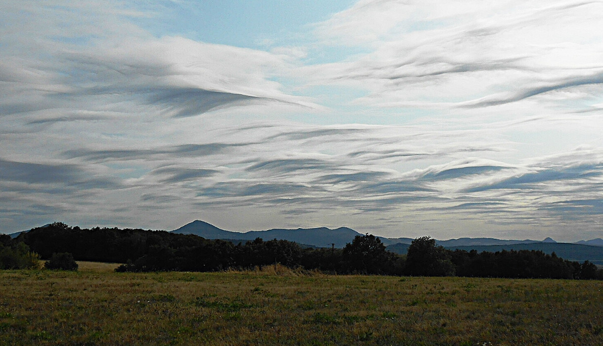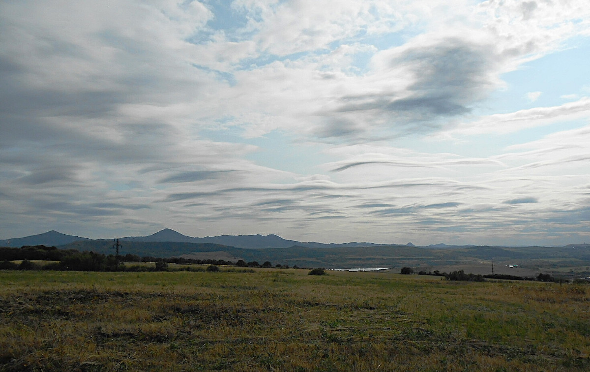 Já vím, že jsem už asi otravná, ale nepodělit se s vámi o tu nebeskou krásu by mi bylo trochu líto. Co běhá po zemi a po stromech, mi moc fotit nejde, na ranní focení jsem líná a motýlů u nás moc nelítá, no a Říp je daleko. Nehledě na to, že nikomu nechci lézt do zelí. Vybrala jsem si tedy focení toho, co máme nad hlavou, a to je nebe. Tuhle odpoledne jsme po delší době vyjeli s pejsky na Střížovický kopec a jak jinak, foťák jel se mnou. Byla jsem moc ráda, že ho mám, protože matička příroda se fakt snažila. Takové mračení umí jen ona.