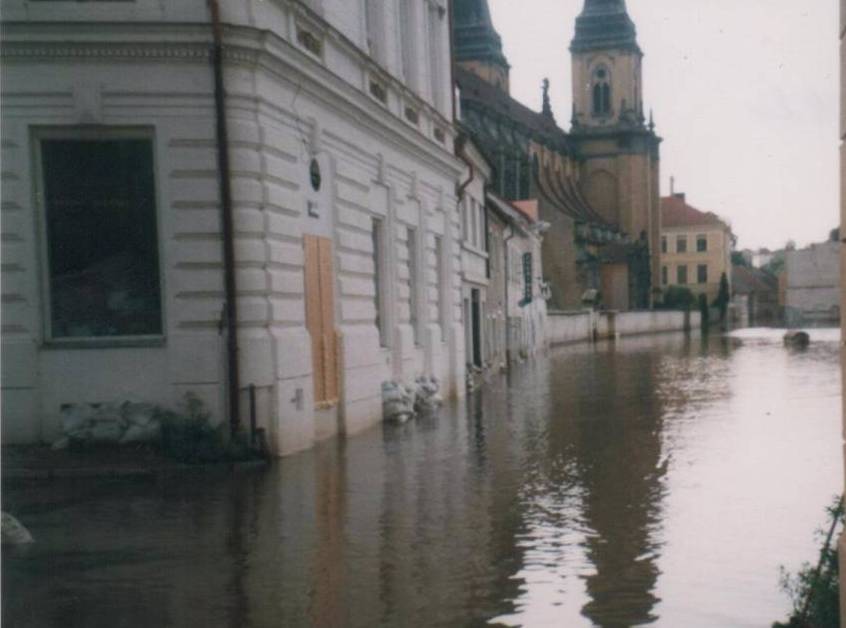 Probírám se nostalgickou černobílou historií. Na nejstarším obrázku z poloviny 19. století je kaple sv. Viléma, postavená na místě někdejšího popraviště mimo město a vyzdobená freskami Václava Vavřince Reinera. Dnes je na jedné z nejživějších městských křižovatek. Na fotografii z roku 1890 je povodeň, která se od té doby opakovala ještě několikrát. Další fotografie už jsou ze století dvacátého.