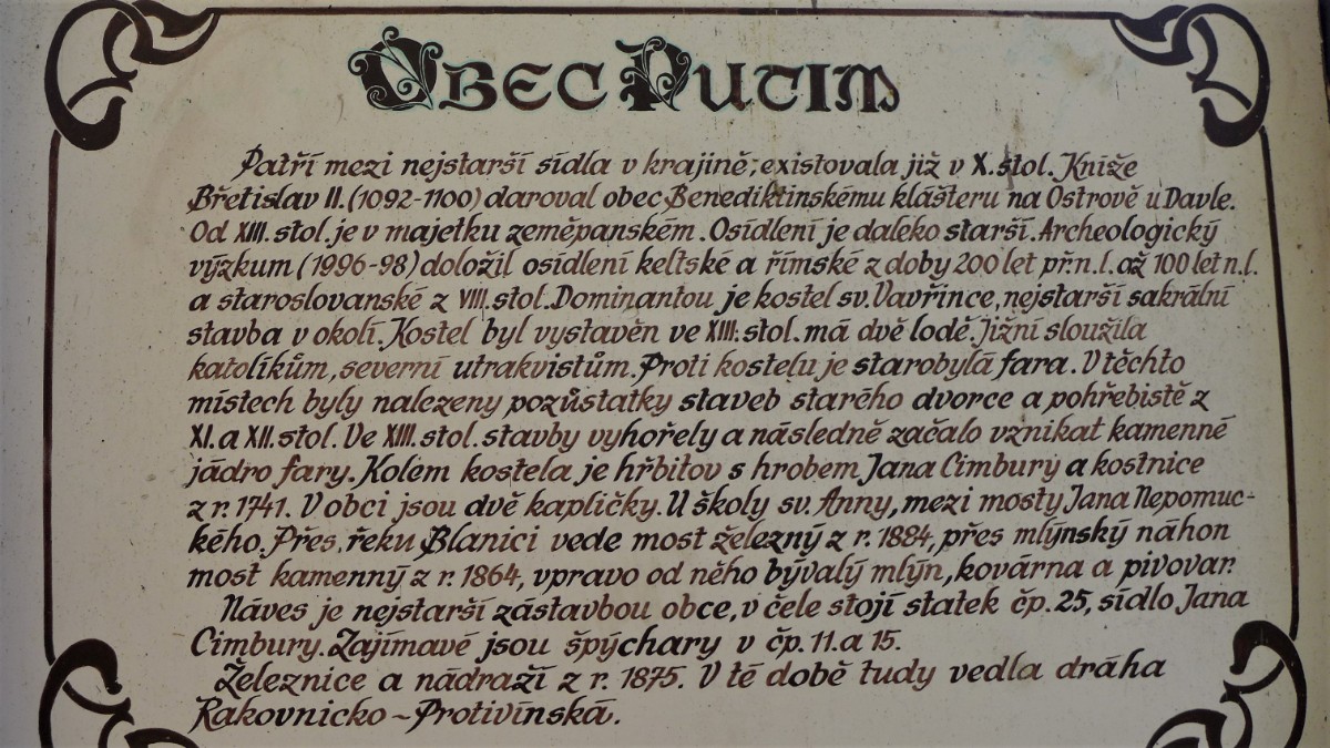 Putim, nedaleko Písku, je vesnická památková zóna. Kostel sv. Vavřince z druhé poloviny 13. století je dvoulodní. Starší část je určena pro katolíky a mladší sloužila kališníkům. Naproti kostelu je fara, kde byly nalezeny zbytky starobylého dvorce a pohřebiště z 11. a 12. století. Působil zde strýc J.Š.Baara. Ten zde o prázdninách pobýval a život vesničanů popsal v knize Jan Cimbura. Mnohé se dovídáme i z knihy Ladislava Vydry Na putimské faře .