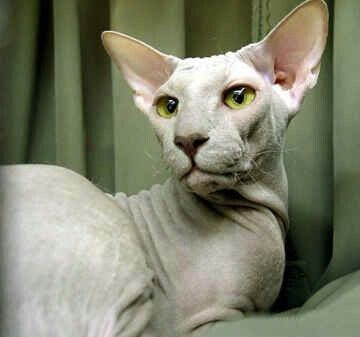 Peterbald. Nyní velmi módní plemeno, které bylo uznáno jako samostatné plemeno až v roce 2007. Bylo vyšlechtěno z donského sphynxe a orientální kočky, což znamená, že je bez srsti.